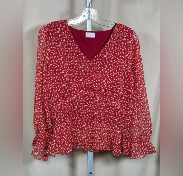 ANVI Red Floral Blouse - Size XXL
