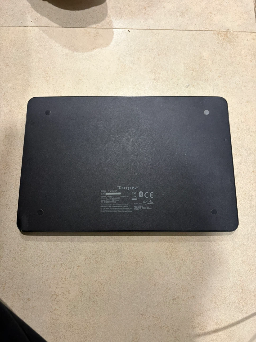 This is a Targus wireless keyboard. It's black and designed for portability. Includes a charging port and power switch.