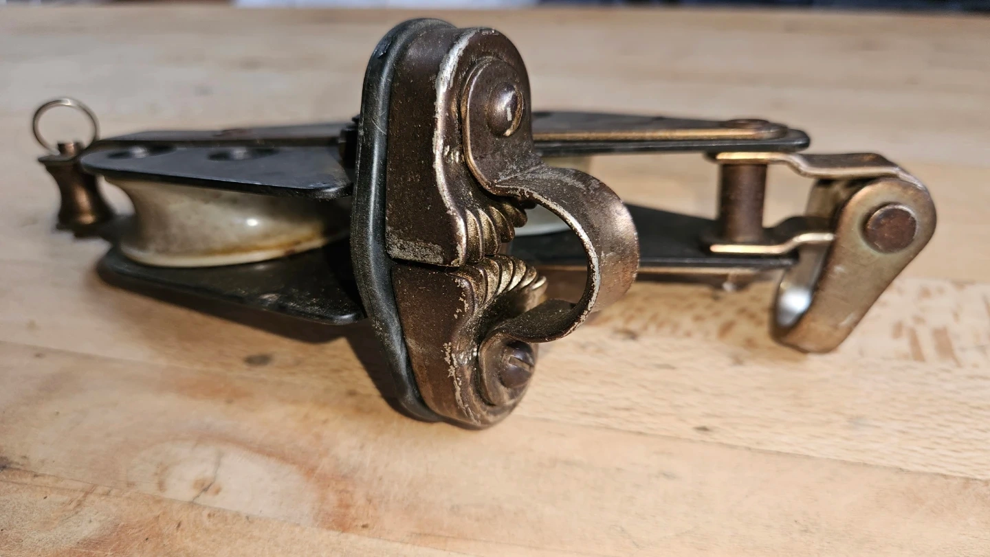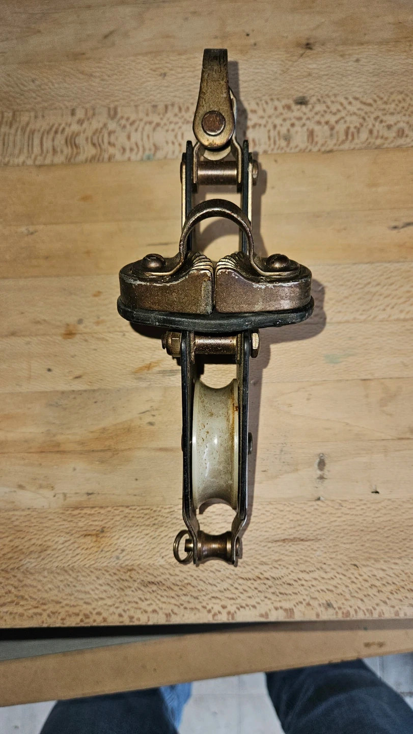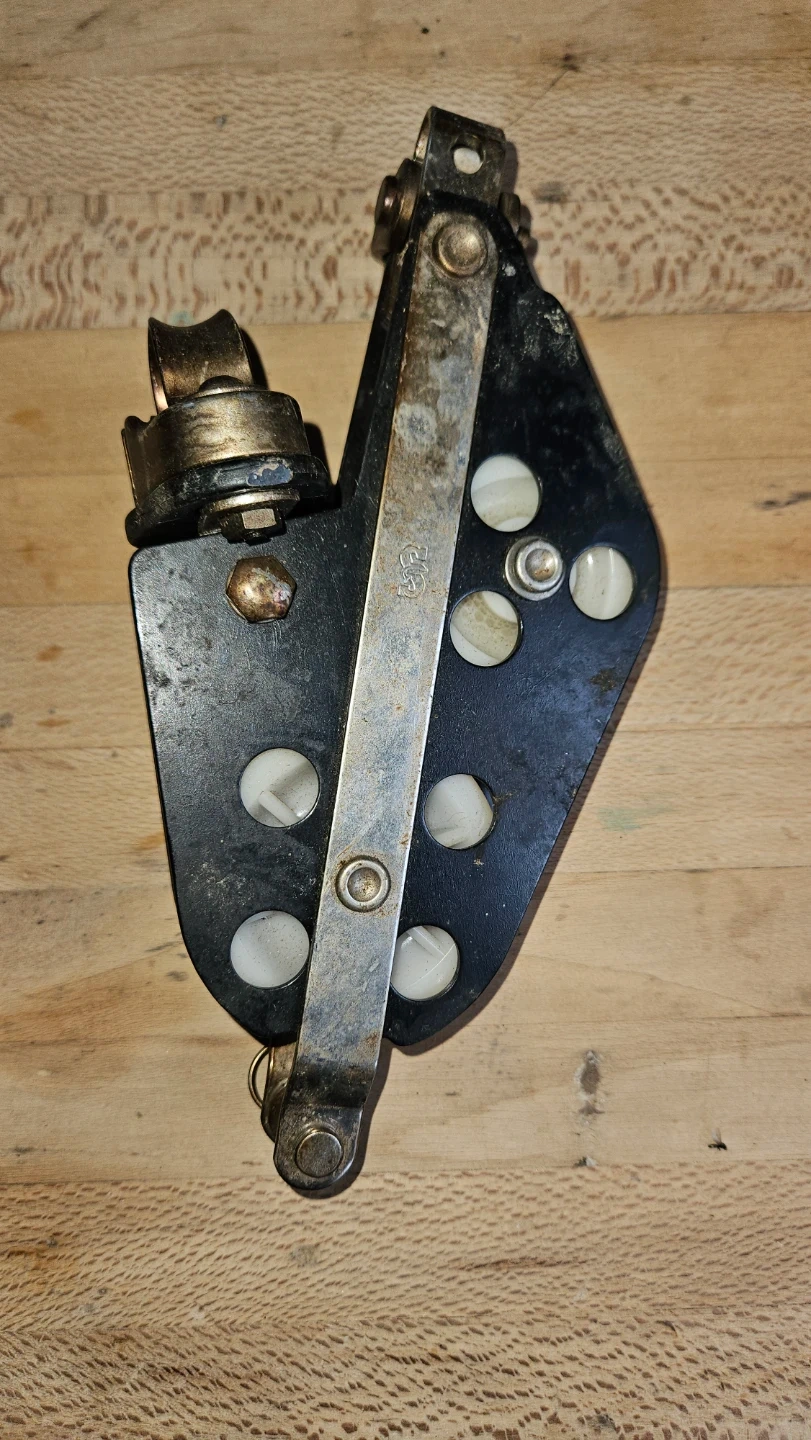 This is a main vintage sheet block cam cleat assembly, It's made of metal brass hardware and features multiple sheaves for smooth operation. A sturdy piece of hardware for any boat owner or collector! You call me at 289-356-7238 or email dugki9@hotmail.com sincerely Douglas