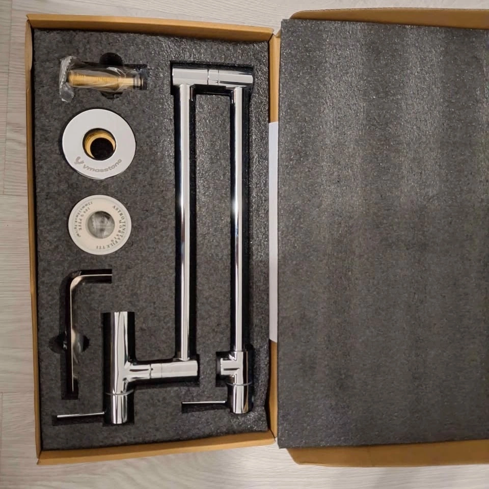 The design features 360° rotation and dual joint swing arms for quick and easy pot filling. The dual-handle, dual-valve design allows you to control water flow with either handle, and the high-performance faucet aerator ensures stable, splash-free water flow. After use, close both handles and fold the arms back to save space.
