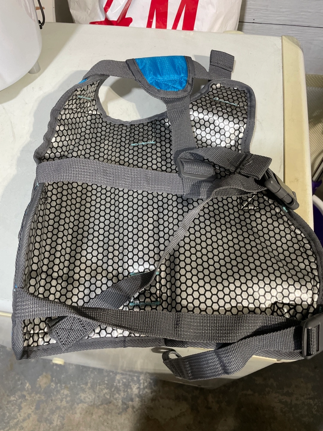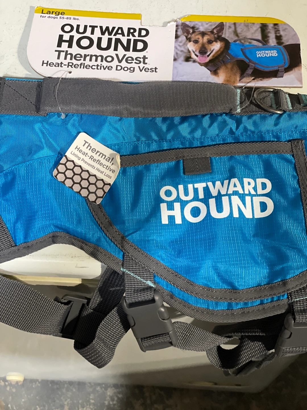 Outward Hound ThermoVest for dogs 55-85 lbs. Large size. Heat-reflective dog vest. Thermal lining. Grey and blue.