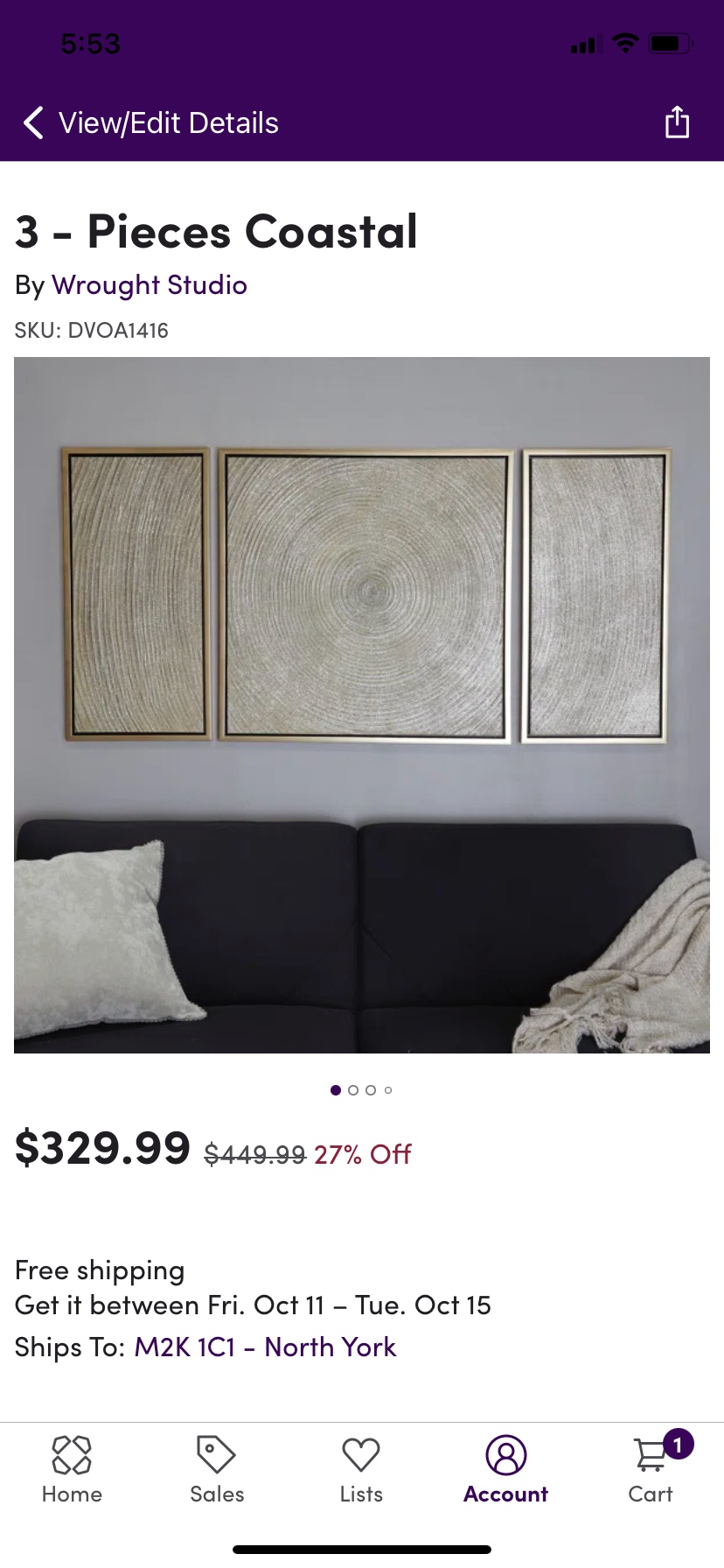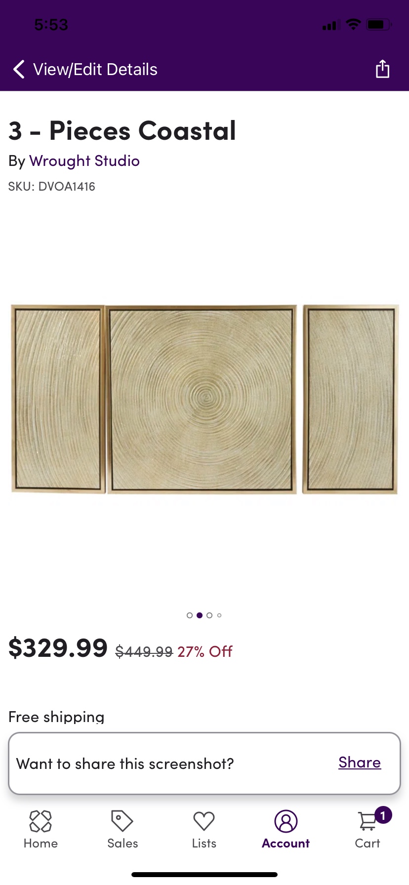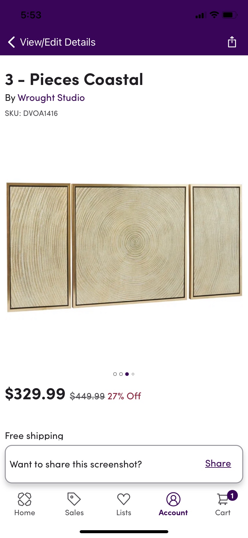 1 / 31 / 3Buy & Sell3-Piece Gold and White Wall Art3-Piece Gold and White Wall Art$175Set of three framed pieces of wall art with a gold and white circular design.WHERE TO MEETCheck LocationView MapSELLERverifiedJazBayview Village878 reviews0 chats·0 favorites·18 viewsSEND CHAT TO SELLERHi Jaz! I’m interested in your listing.Hi Jaz! I’m interested in your listing.Get the Karrot app to chatSign In to chat