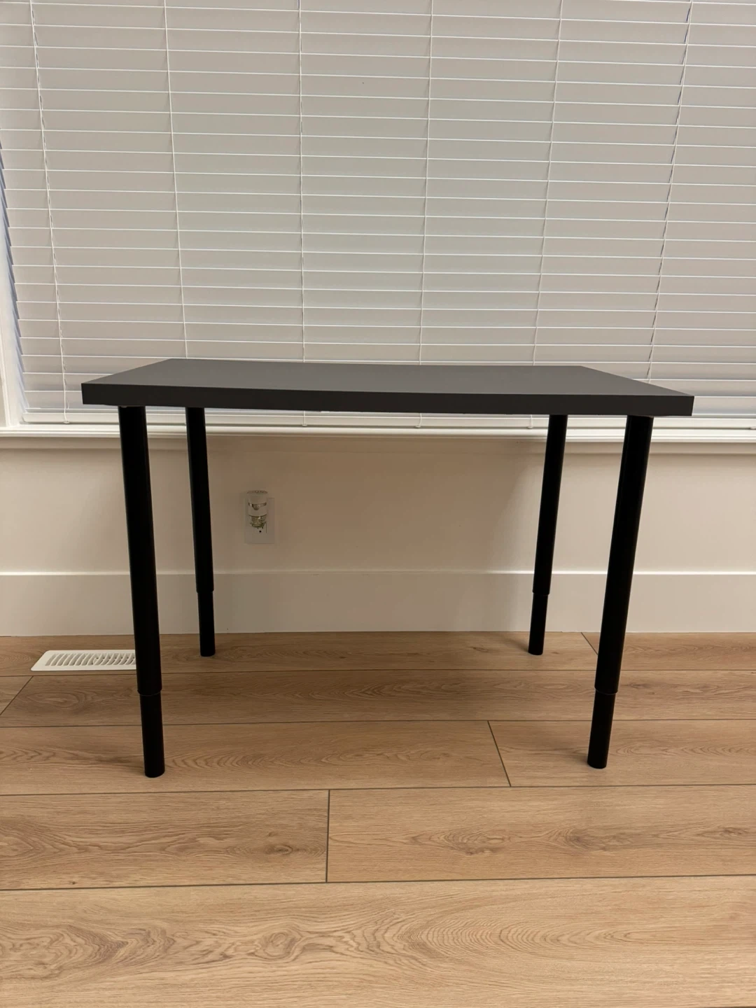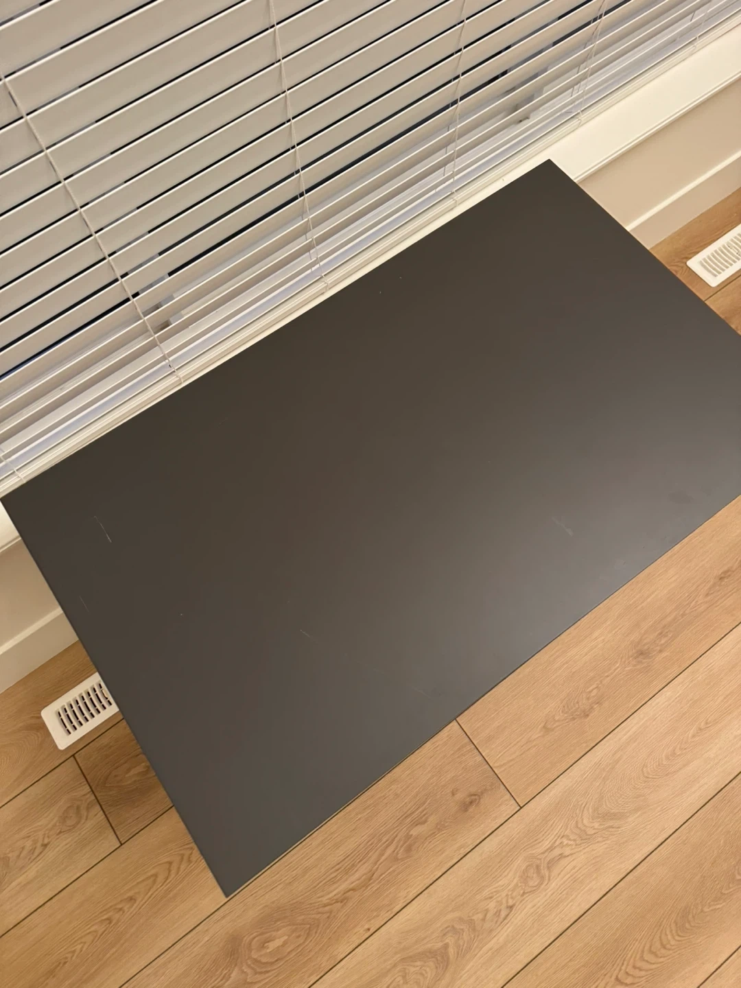 Small table - dark grey top with black legs. It has some light scratches on the surface, visible in the photos.