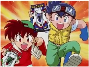 Classic Race Day Art: Features the iconic 90s anime style of Retsu and Go in a high-energy sprint.