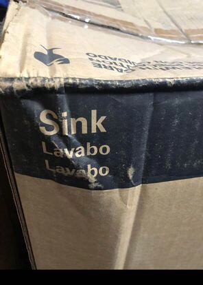 New in box white wall mount sink with faucet UNIVERSAL