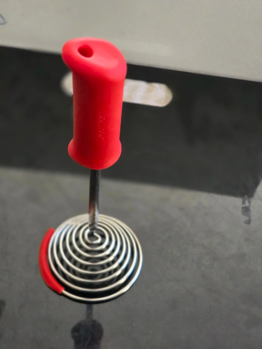 Built-in Scraper: The red silicone piece on the edge of the coil functions as a bowl scraper, allowing you to easily clear the sides of your pot or bowl while mashing.