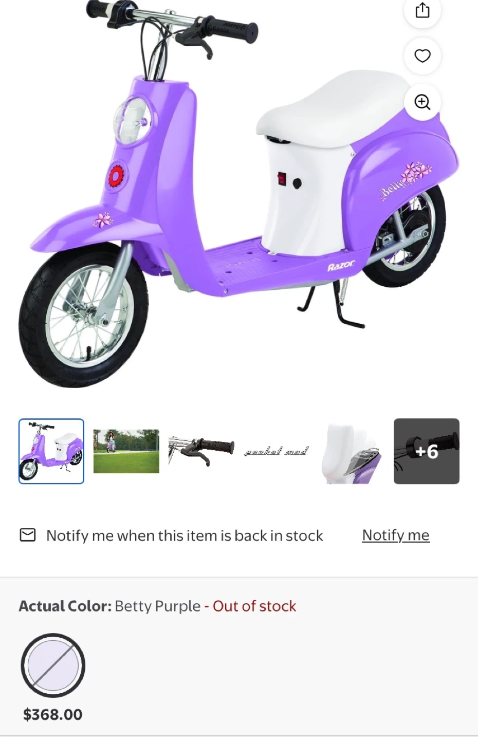 Buy & SellRazor Pocket Mod Betty Purple ScooterRazor Pocket Mod Betty Purple Scooter$185Selling a Razor Pocket Mod scooter in Betty Purple! It's such a fun ride. Originally bought for $368.00WHERE TO MEETCheck LocationView MapSELLERLuisGurnee120 reviews0 chats·0 favorites·17 viewsSEND CHAT TO SELLERHi Luis! I’m interested in your listing.Hi Luis! I’m interested in your listing.Get the Karrot app to chatSign In to chat