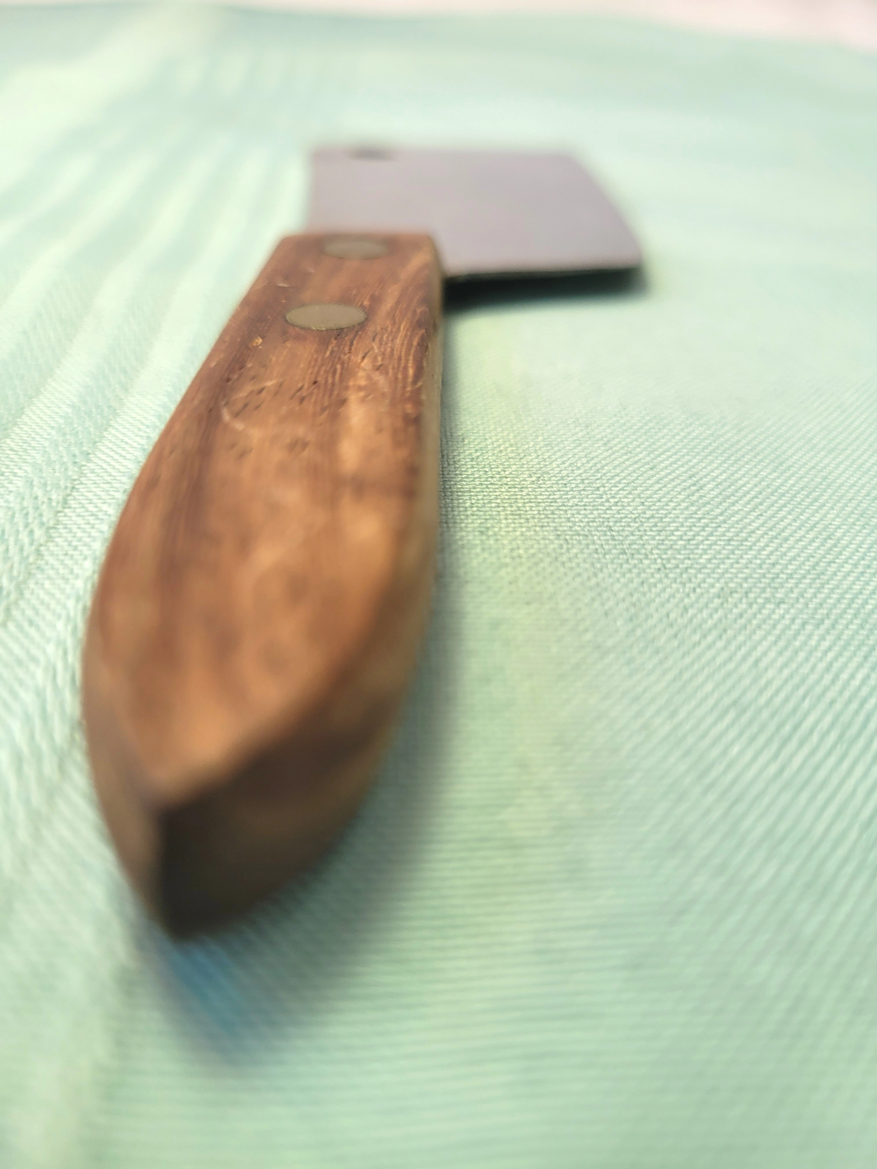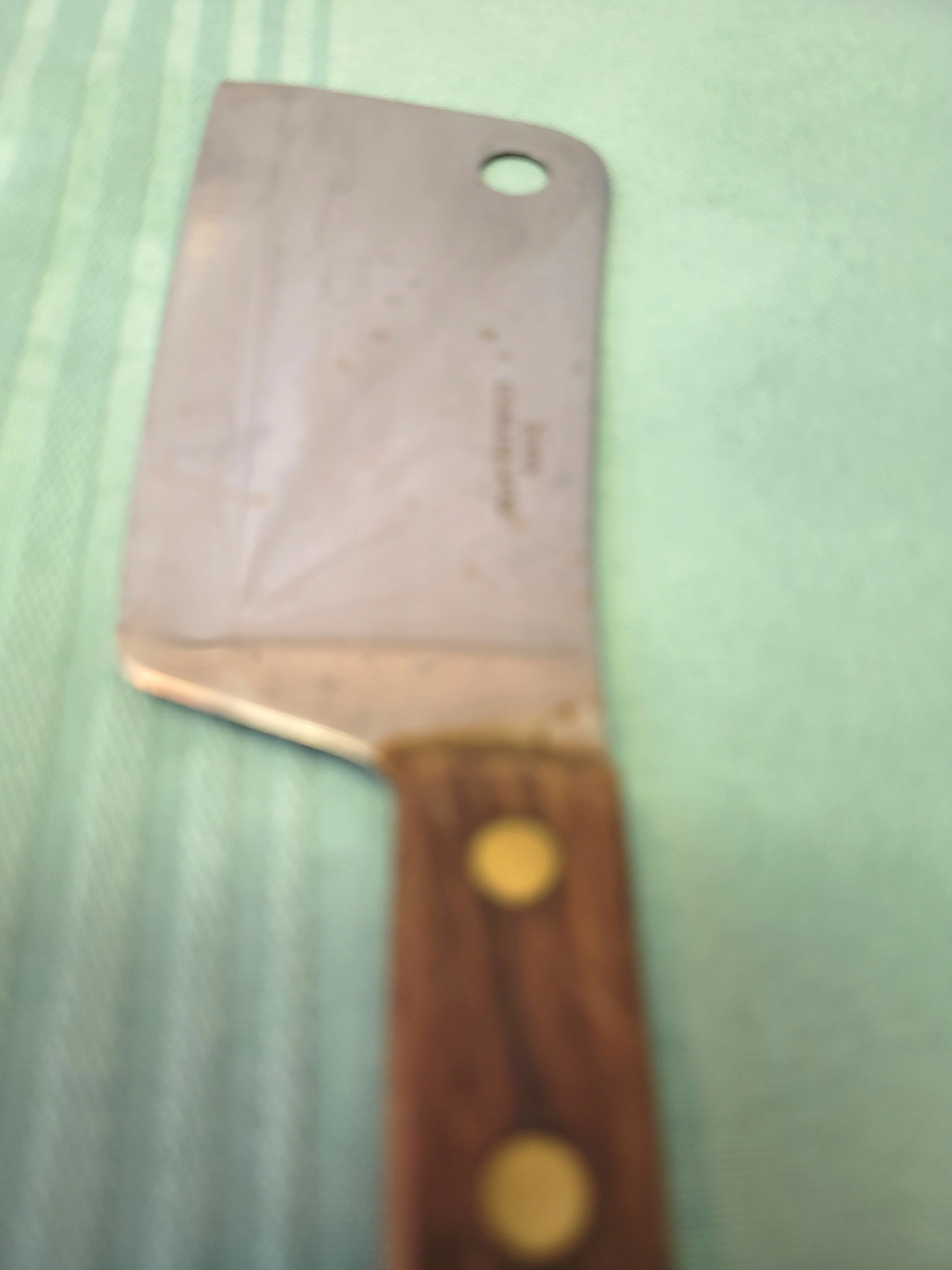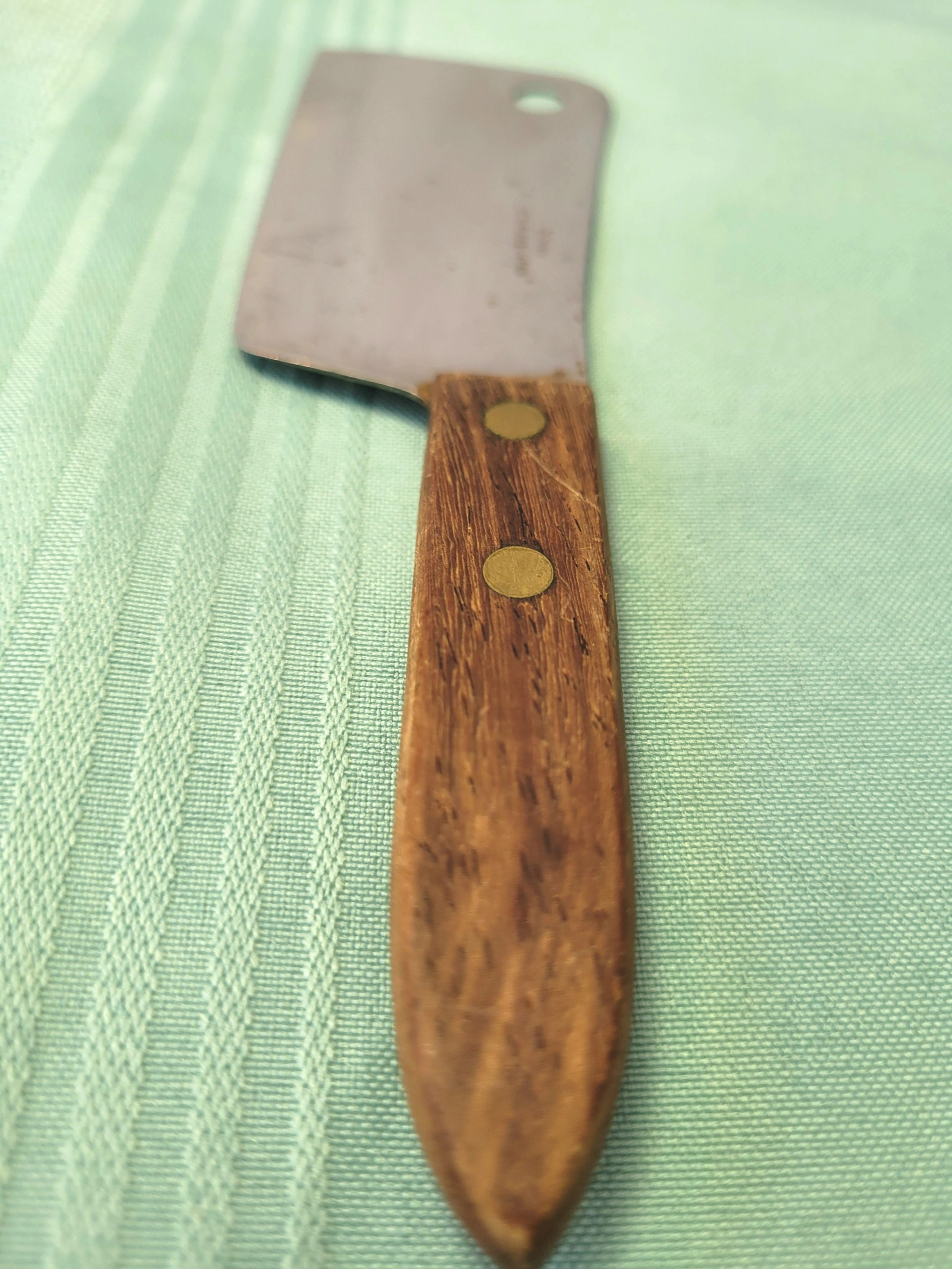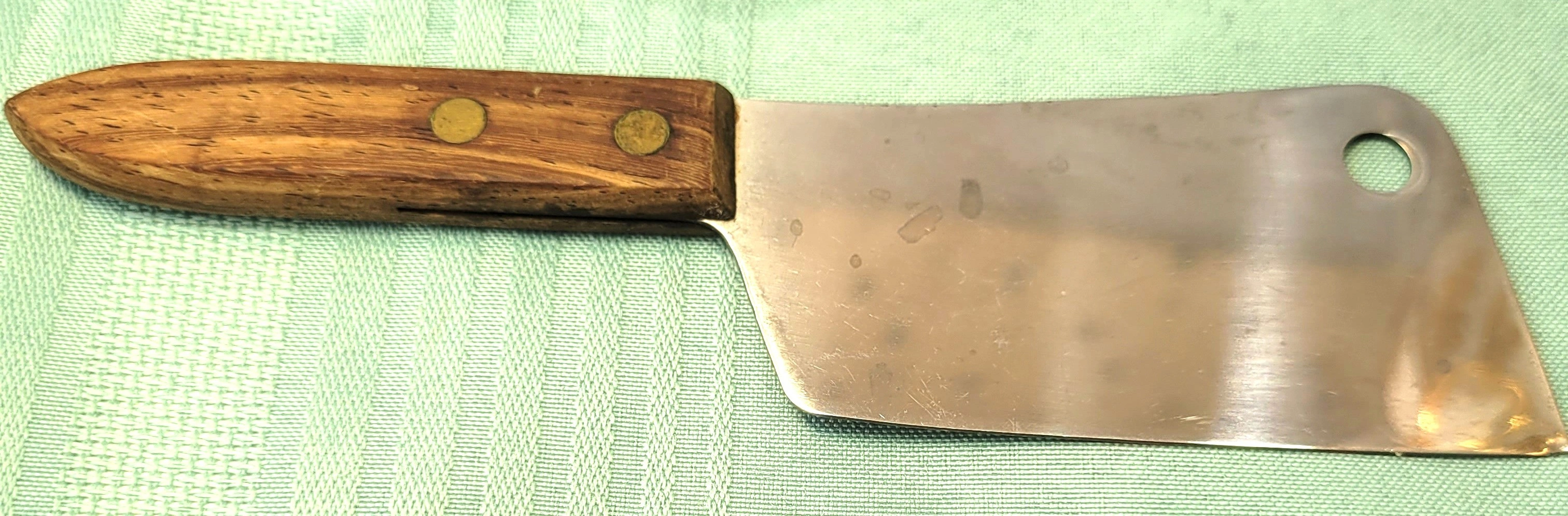 Condition: This cleaver is in vintage condition with regular wear. The blade shows light surface marks consistent with age, and the wood handle has a beautiful, aged finish. It remains structurally sound and ready for use or display.