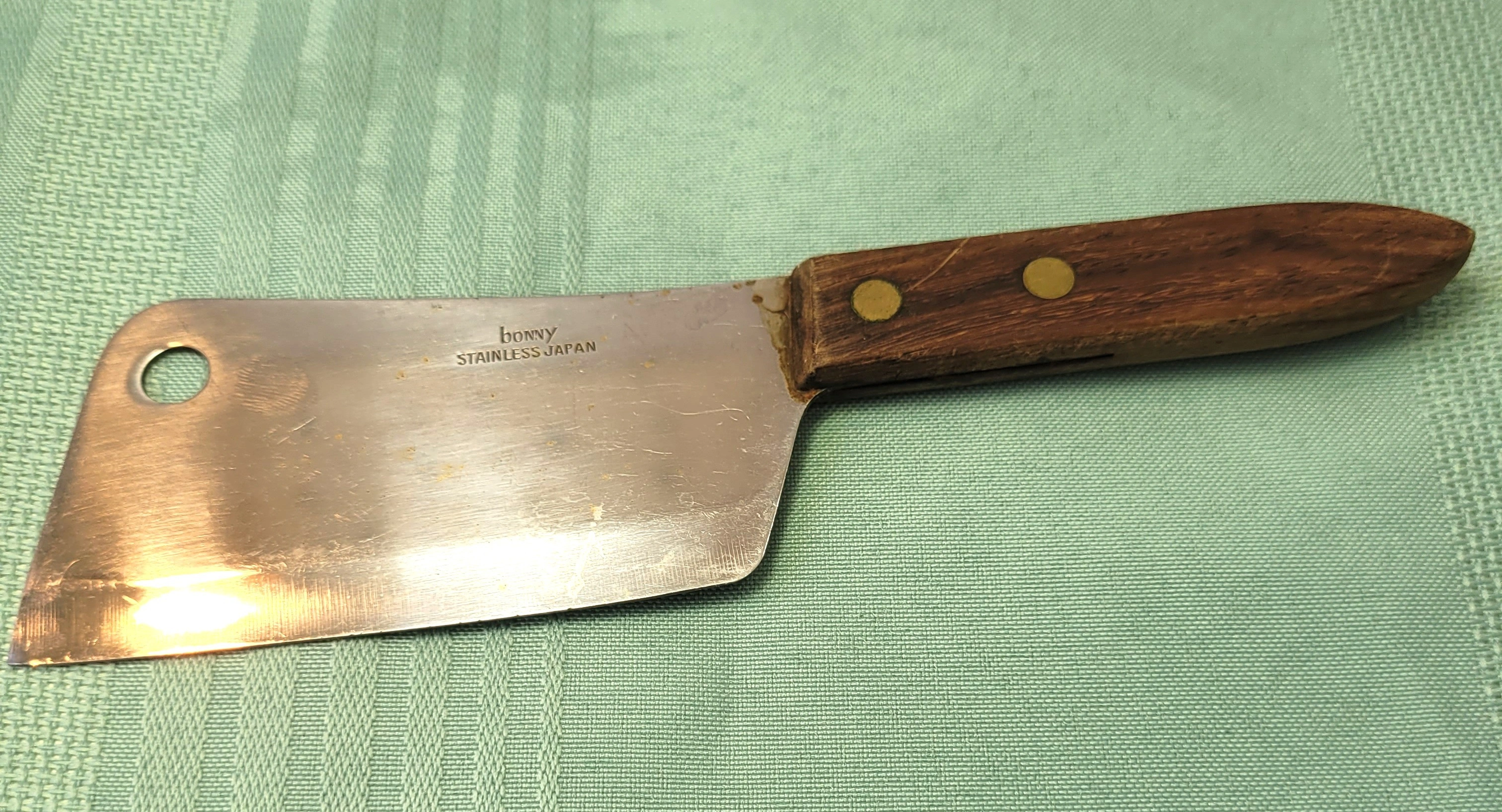 Vintage 70s Bonny Mini Cheese Cleaver Knife Stainless Japan Wood