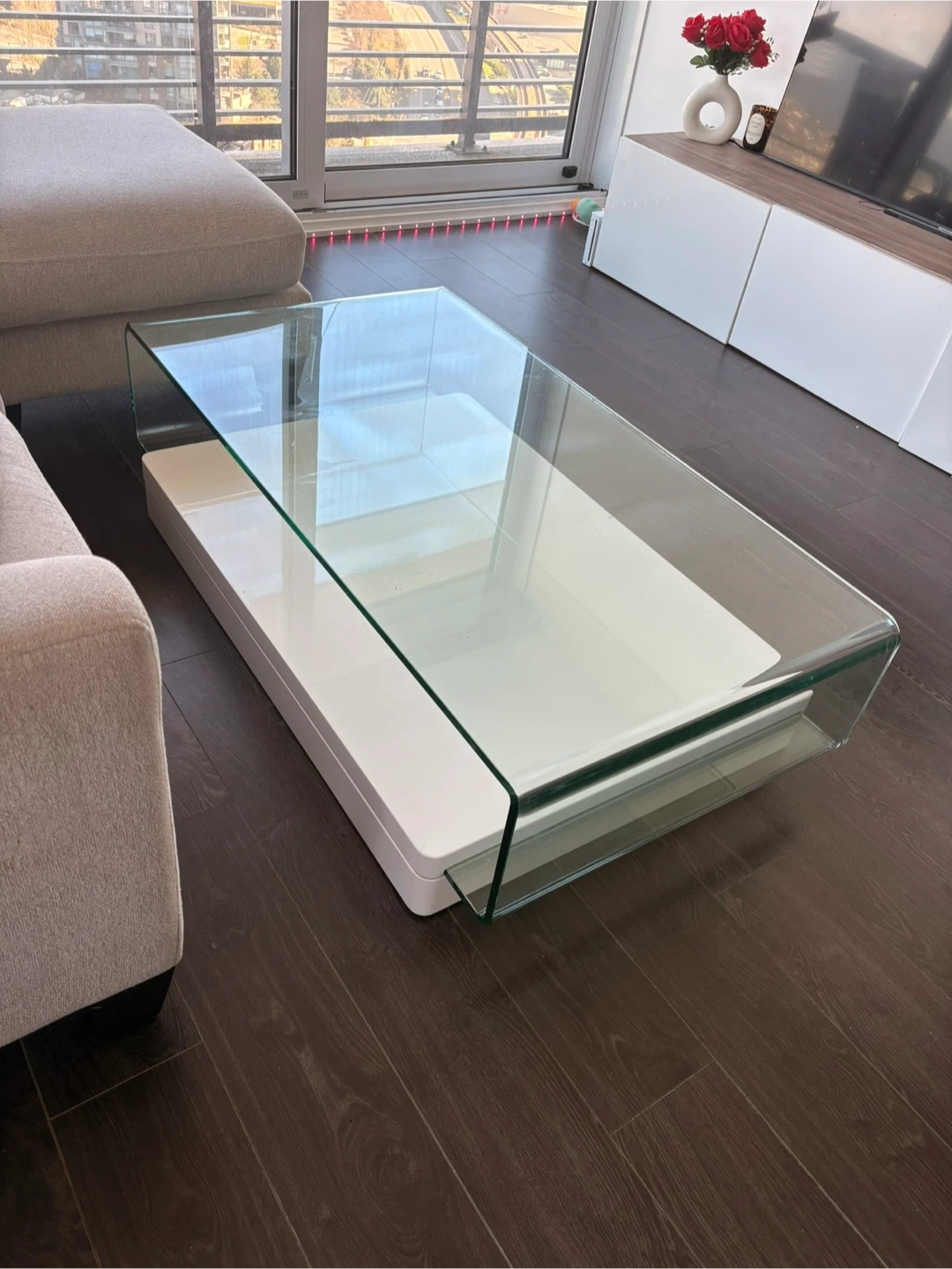 Modern Glass and White Coffee Table
