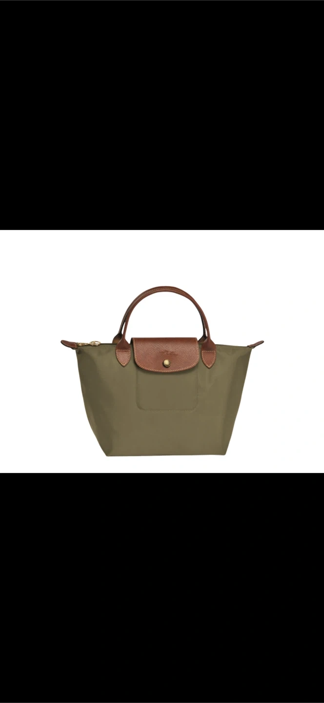 This is a Longchamp Le Pliage handbag in a lovely khaki colour. It's made with durable nylon and features brown leather accents. It's perfect for everyday use! It’s real longchamp and I’m selling it really cheap!