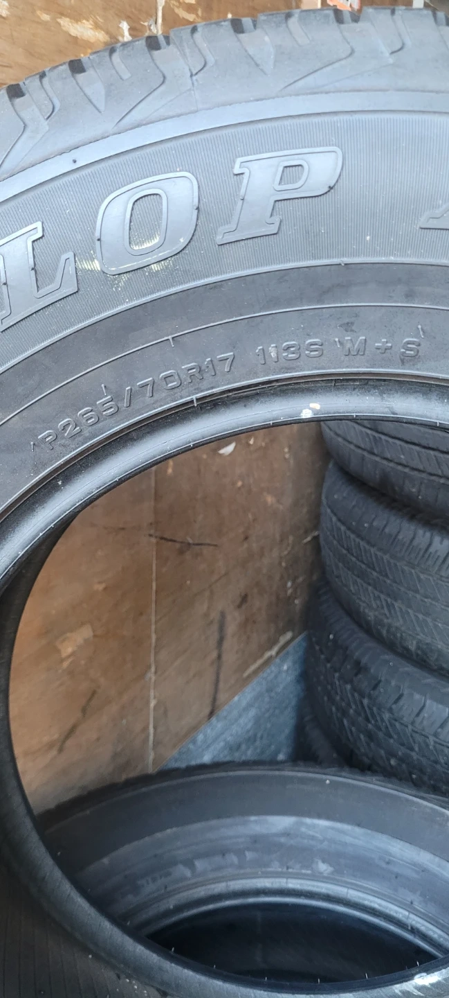 Set of Dunlop Grandtrek AT20 tires. Size is P265/70R17 113S. These tires are great for all-terrain use.