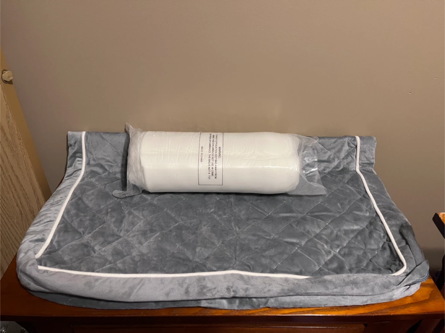 GREY QUILTED PLUSH DOG BED (33”x27”x3”)