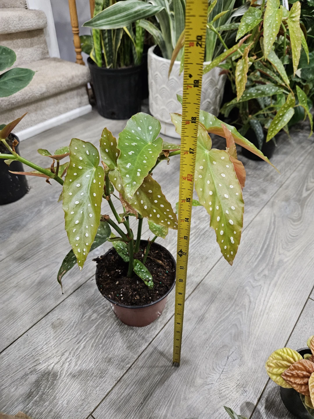 Selling a lovely Begonia Maculata, also known as a Polka Dot Plant! It's about 20 inches tall, as shown in the photos. This plant has unique spotted leaves and is sure to add a touch of green to your home