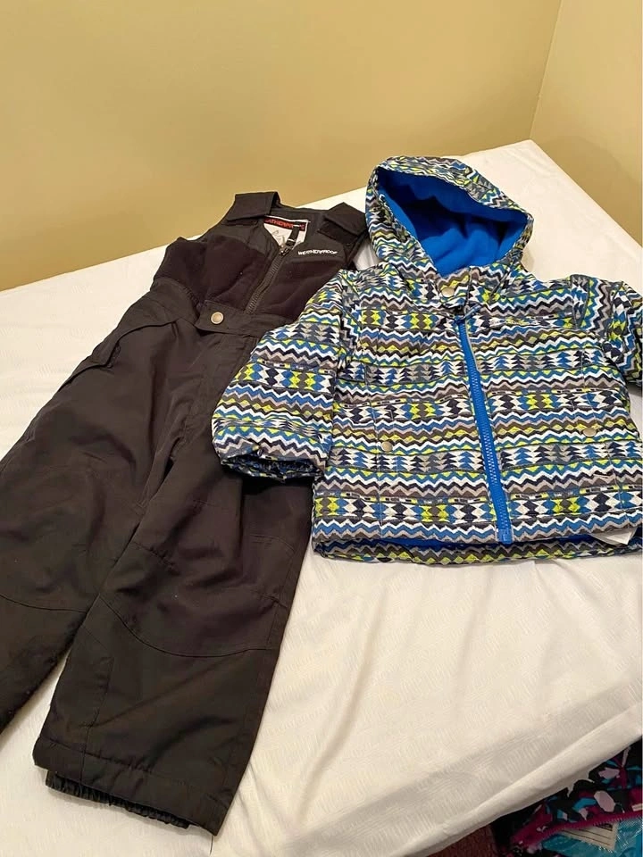 The jacket is Columbia and is like new. The snow pants are not Columbia but have a little wear. From a smoke-free home. Pick up in Airdrie.
