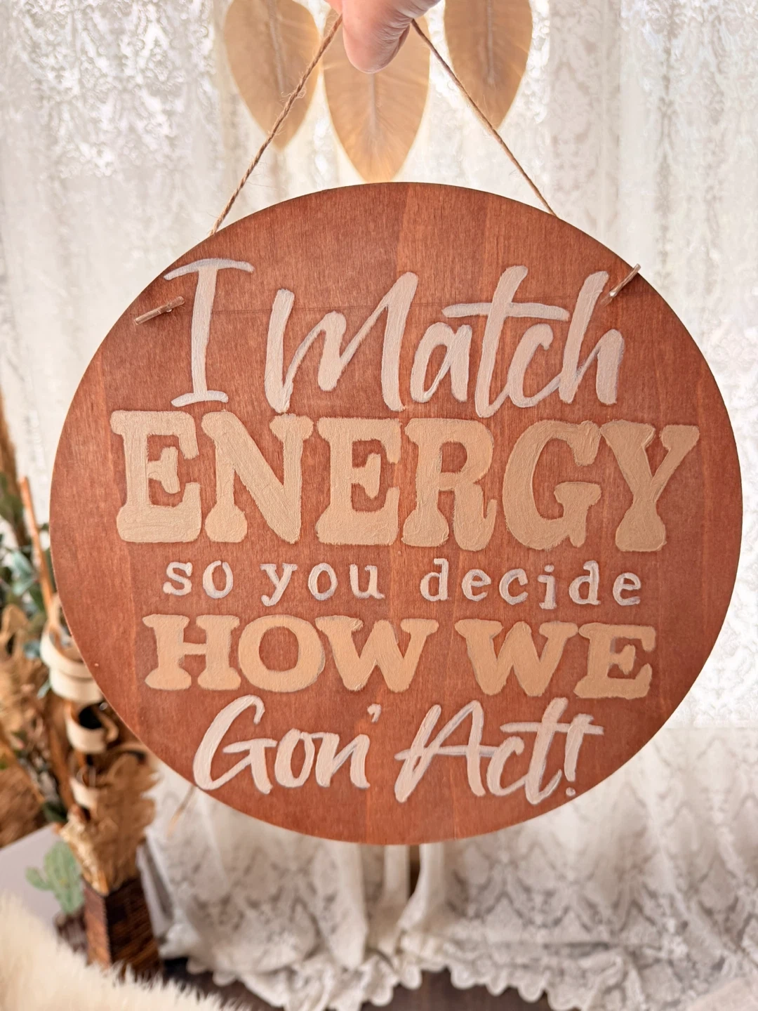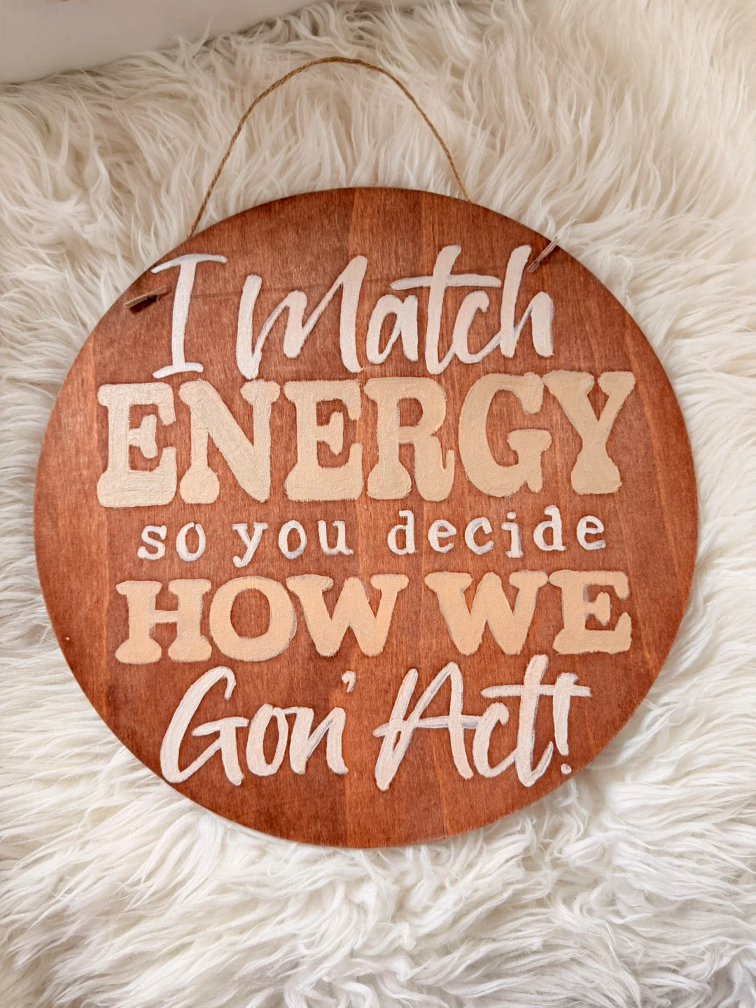 Buy & SellWooden Round Sign - I Match EnergyWooden Round Sign - I Match Energy$10A cute wooden sign that says 'I Match ENERGY so you decide HOW WE Gon' Act!'. Perfect for adding a bit of personality to your spaceConditionNewWHERE TO MEETRiverbankView MapSELLERverifiedLinziGeorgina750 reviews0 chats·0 favorites·0 viewsSEND CHAT TO SELLERHi Linzi! I’m interested in your listing.Hi Linzi! I’m interested in your listing.Get the Karrot app to chatSign In to chat