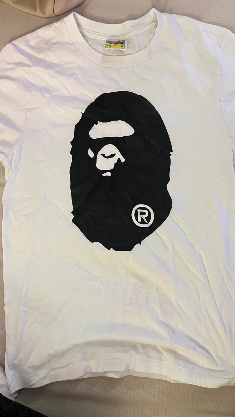 Selling a BAPE t-shirt in white. The size is S. It features the iconic BAPE logo on the front. Great for casual wear!