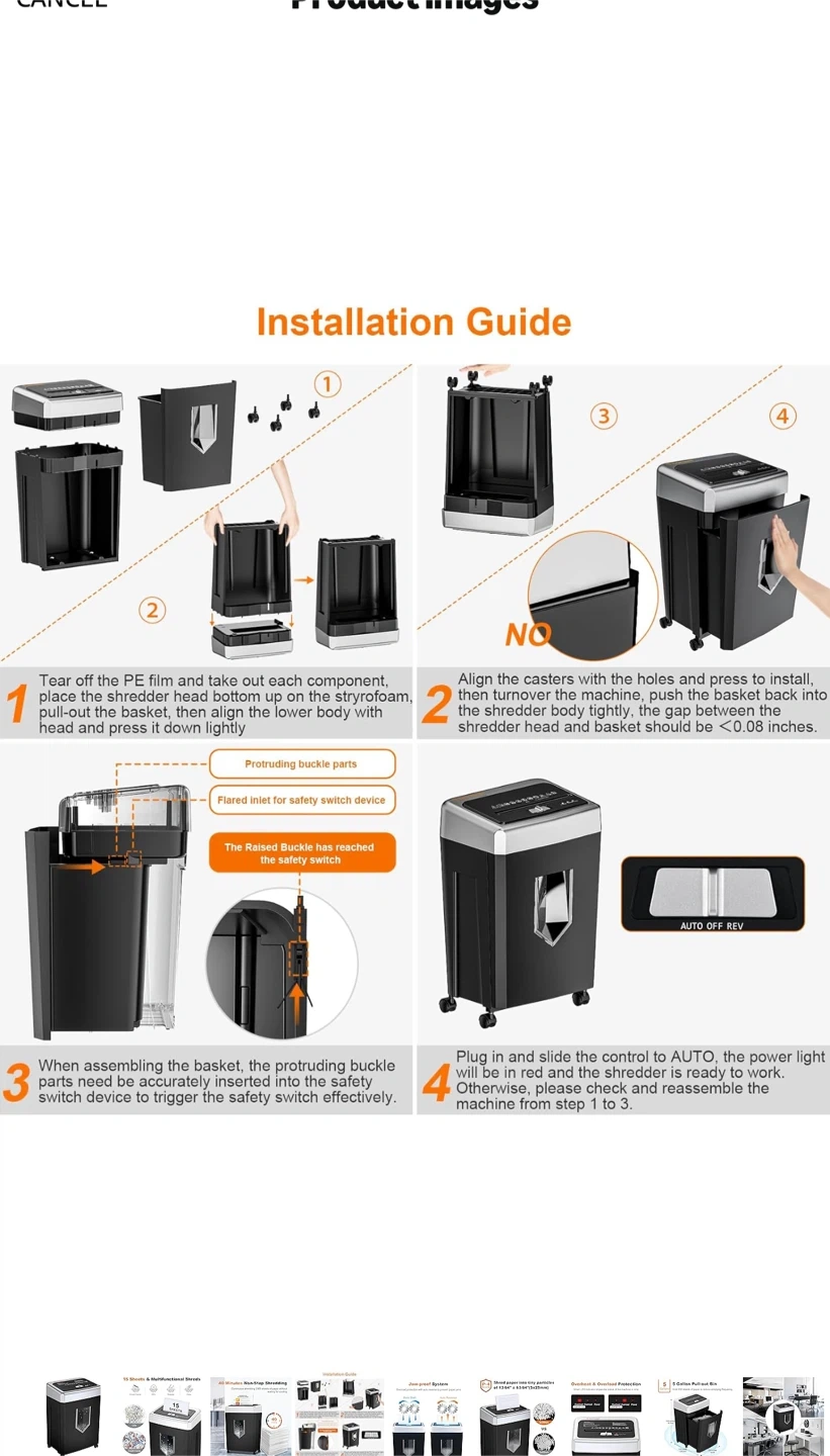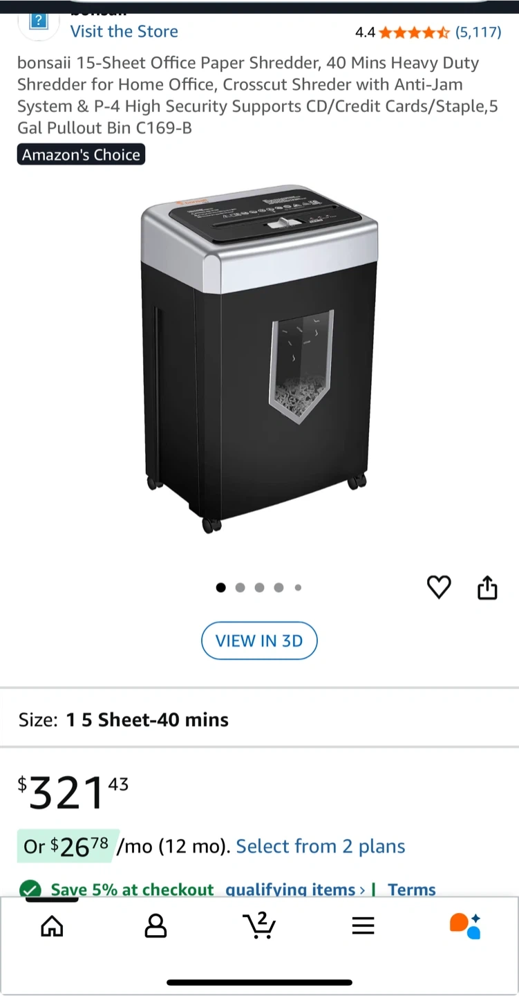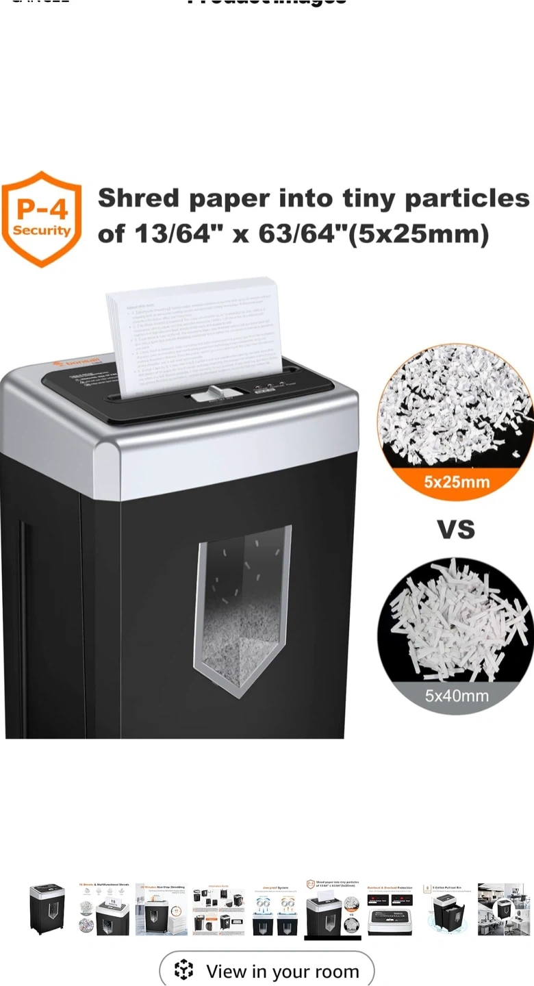 Selling a Bonsaii 15-Sheet Office Paper Shredder. It can shred for 40 minutes of heavy duty shredding. It has an Anti-Jam System and a P-4 High Security that supports CDs, credit cards, and staples. It also has a 5-gallon pullout bin. Originally bought for $321.43