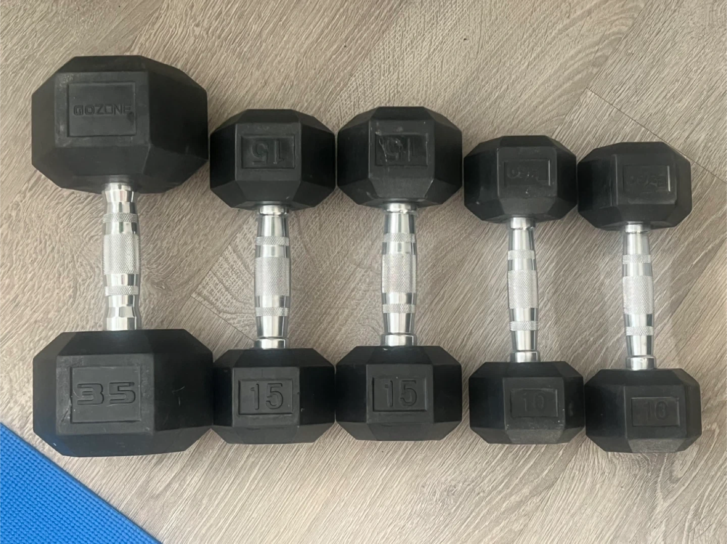 Gym, Dumbbell Set - 1 x 35lb, 1 x 30lb, 2 x 15lb, 2 x 10lb