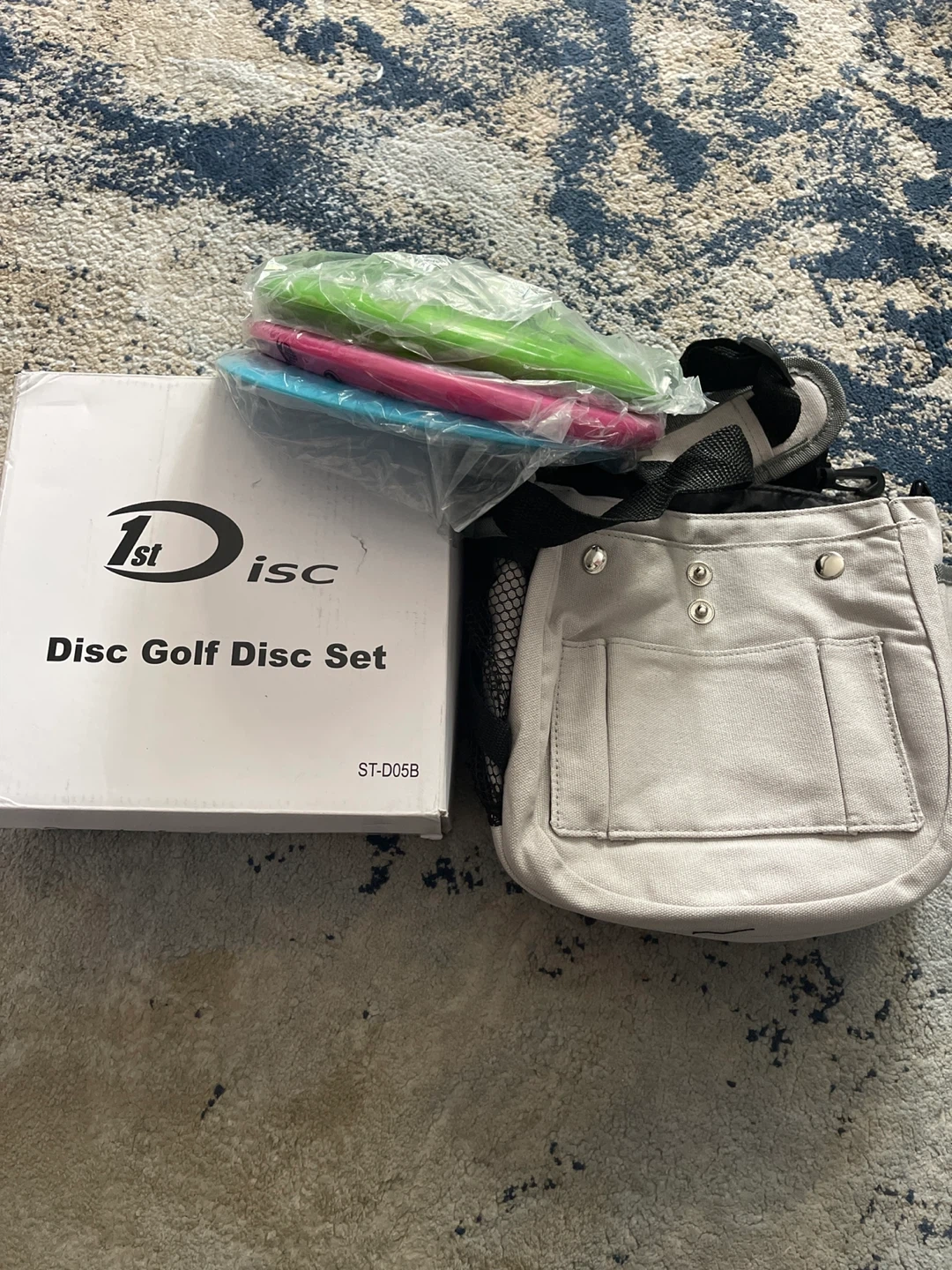 15Selling a 1st Disc disc golf set. It includes the discs and a carrying bag. The model number is ST-D05B. Great for beginners or experienced players alike!