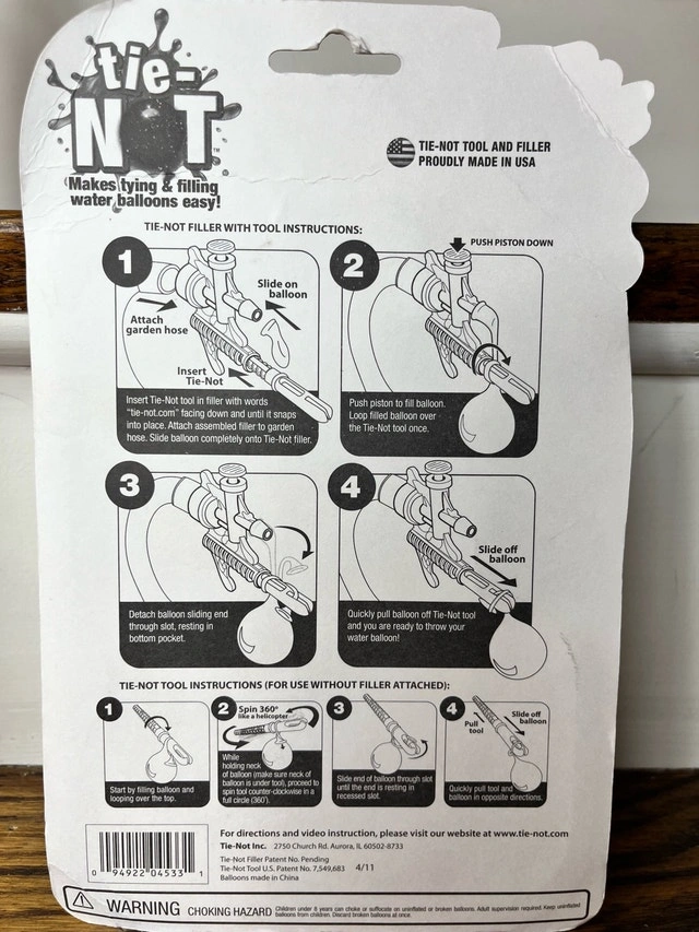 Get ready for some water balloon fun with the Tie-Not Water Balloon Tying & Filling Tool! This tool makes tying and filling water balloons super easy, so you can spend less time prepping and more time splashing. It includes everything you need to make over 100 biodegradable water balloons. It is still new in the original packaging, ready for summer fun. Check out my other listings for more cool stuff!
