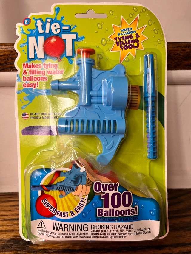 Get ready for some water balloon fun with the Tie-Not Water Balloon Tying & Filling Tool! This tool makes tying and filling water balloons super easy, so you can spend less time prepping and more time splashing. It includes everything you need to make over 100 biodegradable water balloons. It is still new in the original packaging, ready for summer fun. Check out my other listings for more cool stuff!
