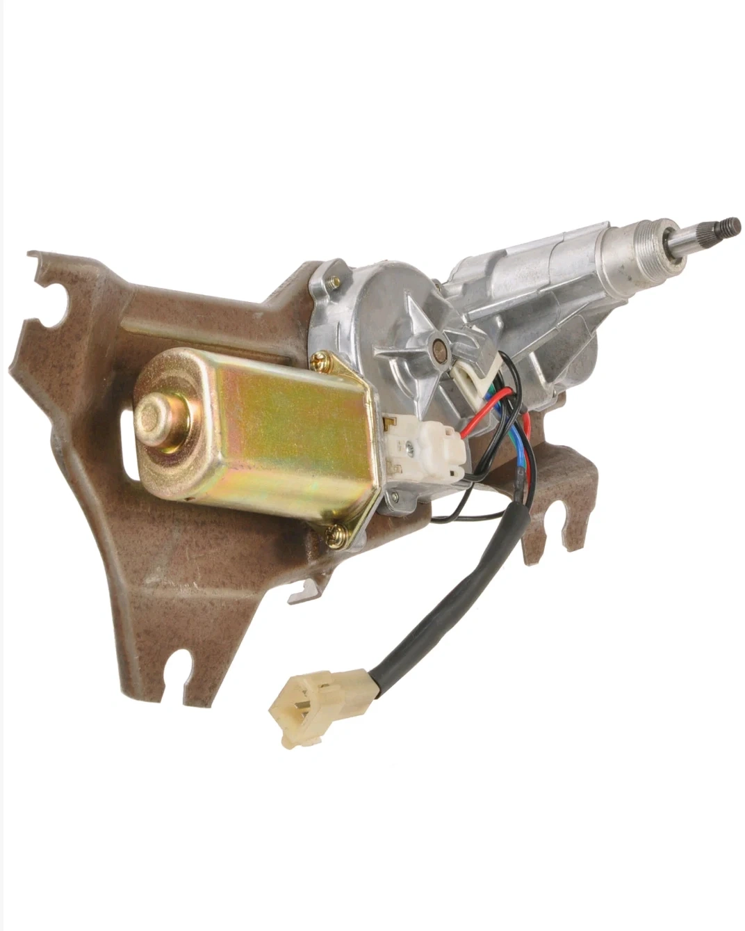 This is a windshield wiper motor assembly. It's a replacement part for vehicles. It includes the motor and mounting bracket.