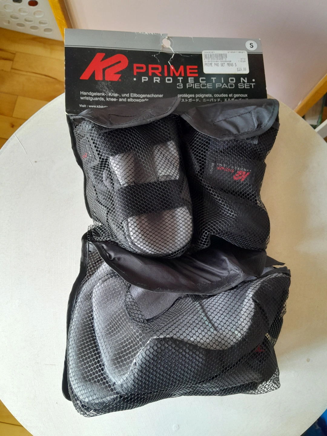 New K2 Prime Protection 3-piece pad set. Includes wrist, elbow, and knee pads. Small size. Comes in original packaging. Used once.