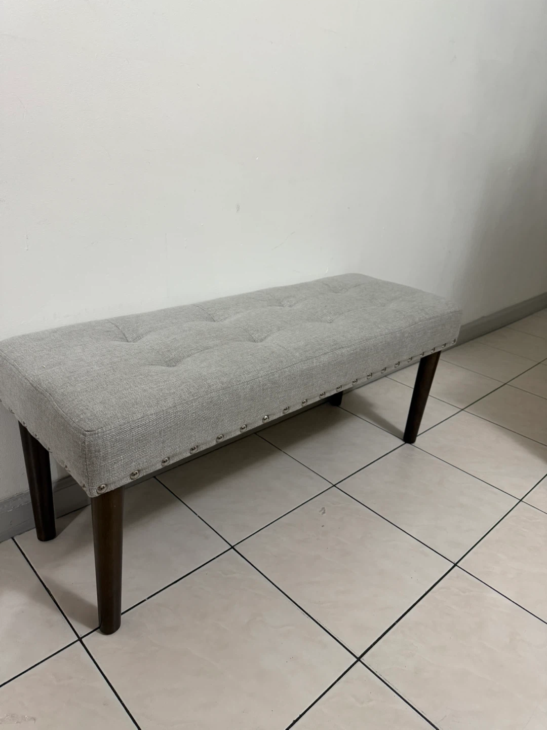 Selling a stylish upholstered ottoman bench that's perfect for adding extra seating or a touch of elegance to any room! The neutral color and tufted design make it a versatile piece that complements a variety of decor styles