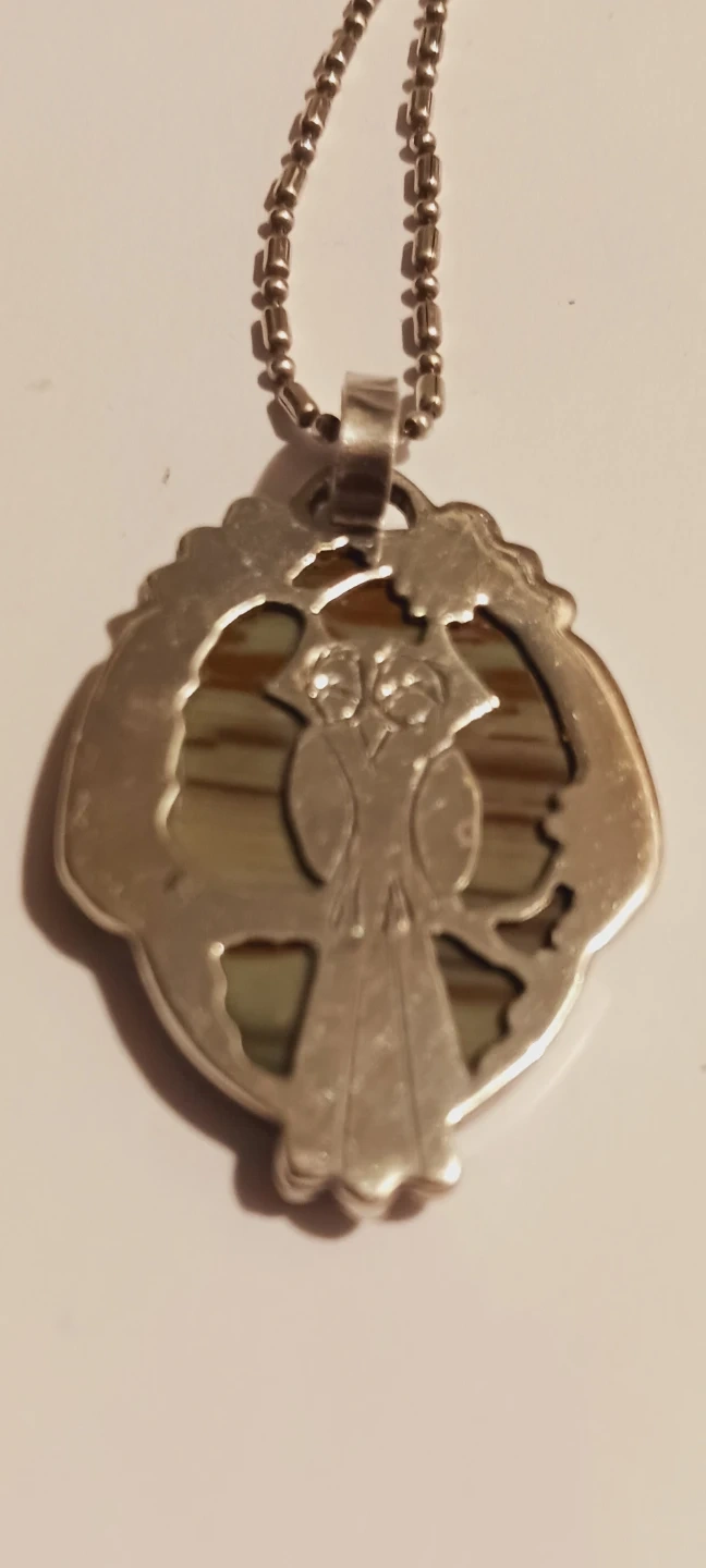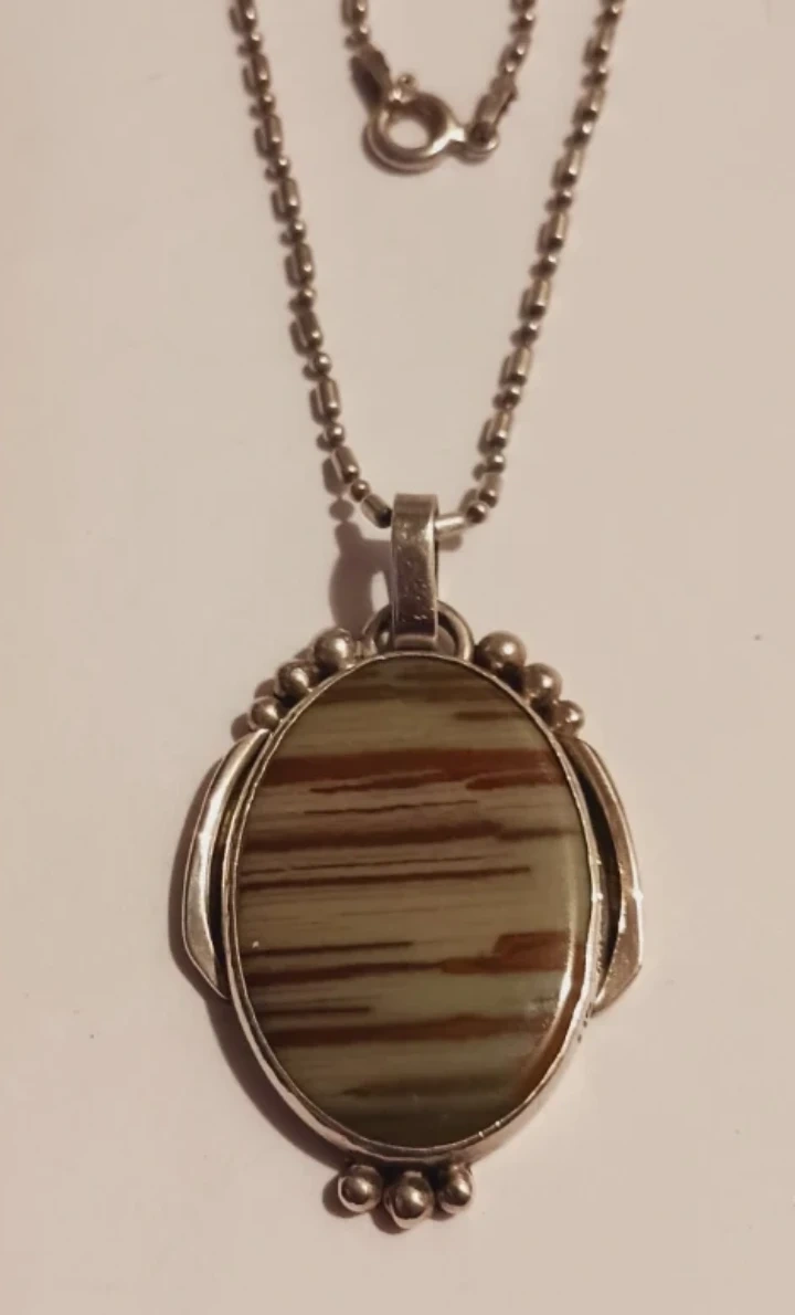 silver 925 Italy chain necklace.The stone has green and brown striped patterns. Pendant features decorative beading around the edge. Chain has a lobster clasp closure. Excellent condition.ALL MY PRICES ARE NEGOTIABLE. 18" long.