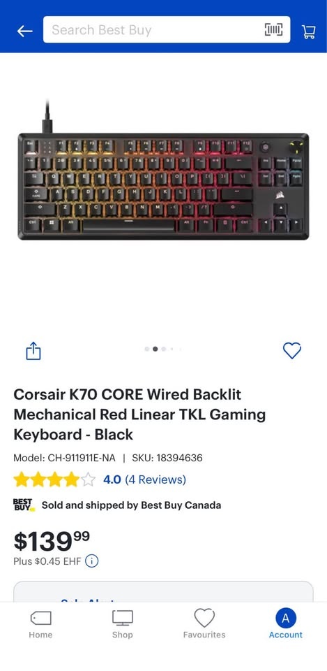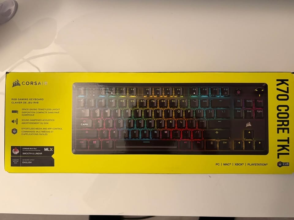 Buy & SellCorsair K70 CORE TKL KeyboardCorsair K70 CORE TKL Keyboard$80Used lightly for about 2 months in great condition. Upgrading to a hot-swappable keyboard. Features red switches. Retail was ~$140.WHERE TO MEETCheck LocationView MapSELLERAbduNewmarket NW100 reviews0 chats·0 favorites·8 viewsSEND CHAT TO SELLERHi Abdu! I’m interested in your listing.Hi Abdu! I’m interested in your listing.Get the Karrot app to chatSign In to chat