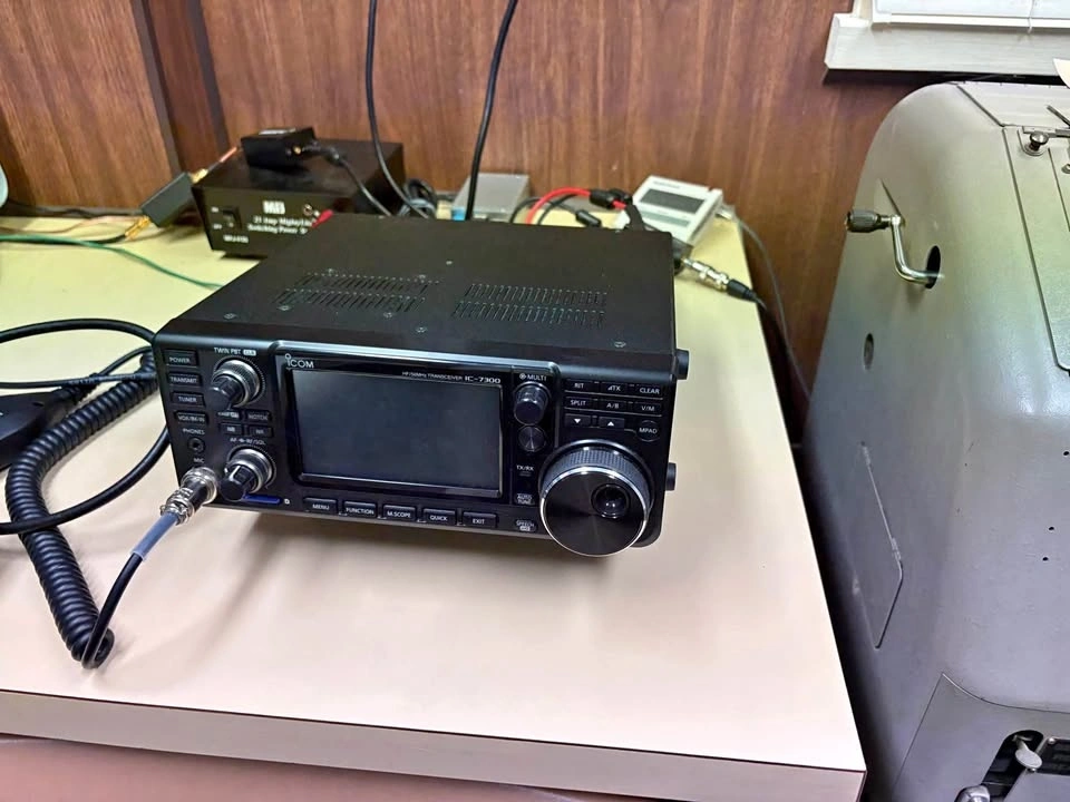 Icom IC-7300 HF + 50 MHz 100W transceiver. This is the popular SDR rig with touchscreen, real-time spectrum scope, waterfall display, built-in auto tuner option, USB for digital modes, and excellent receiver performance. Perfect for SSB, CW, FT8/FT4, and more.