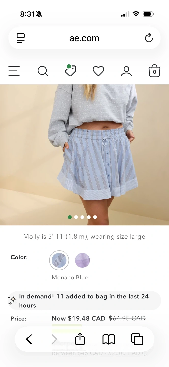 Super Cute Aerie skort in a blue and white striped pattern! It has shorts underneath, making it super comfy and practical. Has a nice flair to it and pockets!!! Size medium.