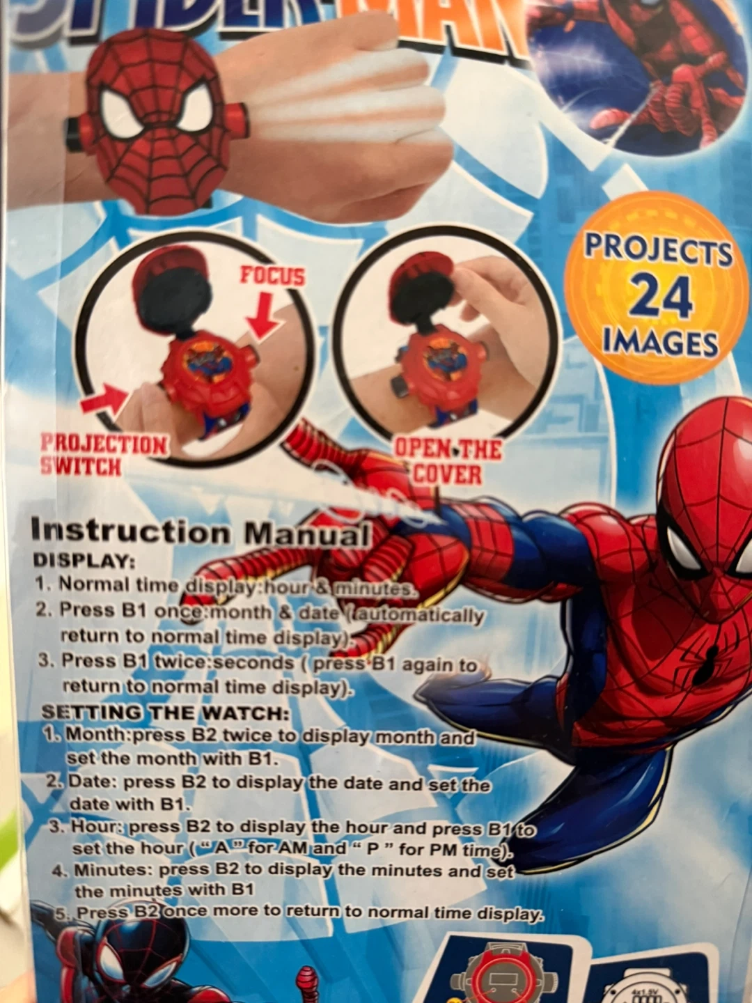 Brand new Spider-Man projection watch, still in its original packaging! Perfect for any young Spider-Man fan, and recommended for ages 3+