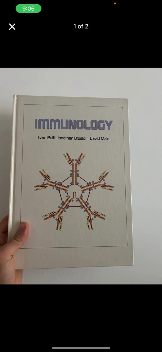 Selling a copy of Immunology by Ivan Roitt, Jonathan Brostoff, and David Male. Condition is good, hardcover with minimal wear and clean pages. ISBN: 0-960623-35-2 (Gower edition). Publisher: Mosby. Perfect for medical, biology, or life sciences students needing a solid reference in immunology. Pickup in Mississauga.