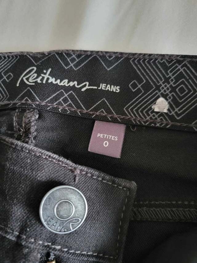 These are a pair of black Reitmans jeans, size petite 0. These jeans are in good condition and ready for a new home! Brand: Reitmans Size: Petite 0 Colour: Black These jeans are just waiting for their next adventure! Don't miss out—if you're seeing this ad, they're still available!