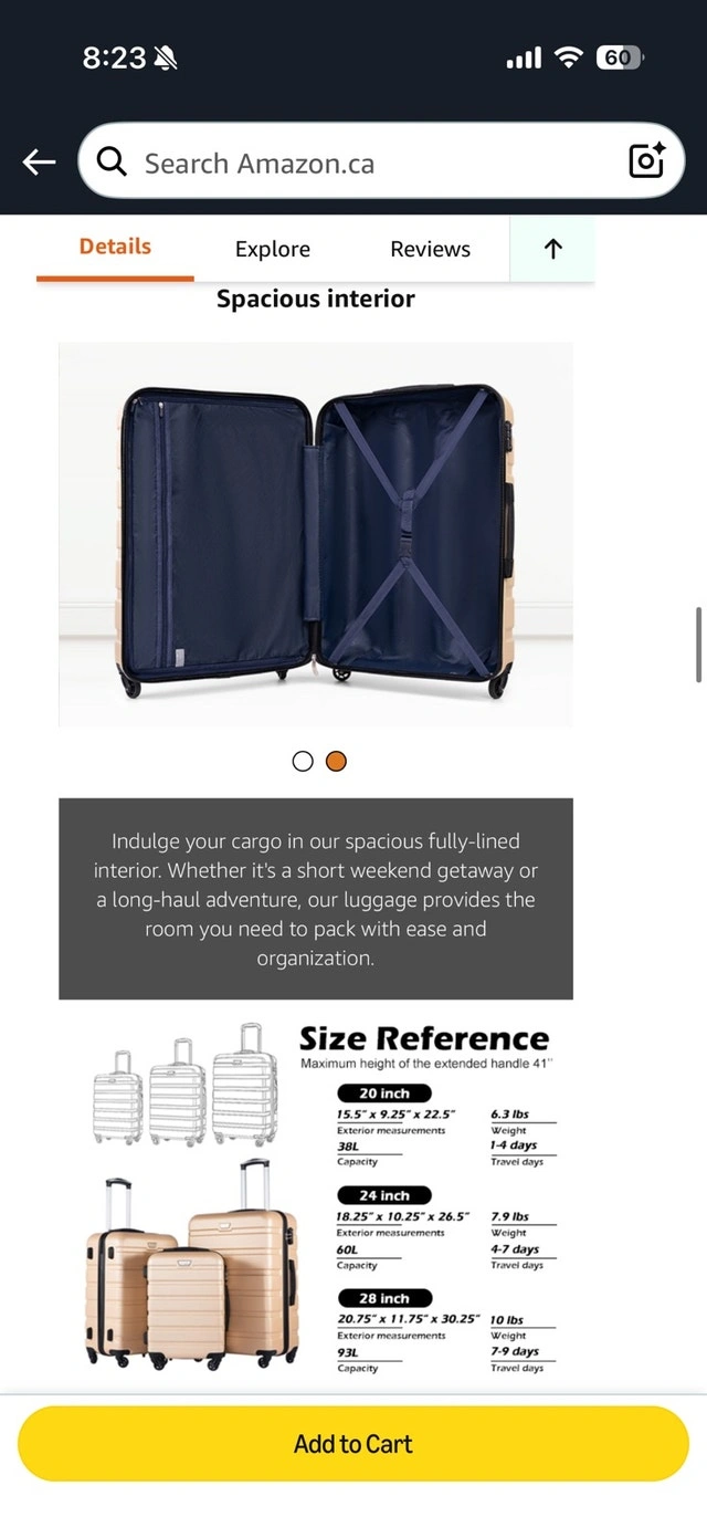 This is a GOLife 20-inch carry-on suitcase in apricot white. It's brand new, never been used, and still has the tags attached. I bought it recently, but it doesn't fit my travel needs, and I'm hoping it will make the perfect travel companion for you! Given the suitcase is brand new, I'm asking $185. If the ad is up, the suitcase is available!