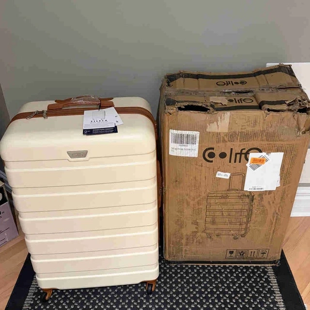 This is a GOLife 20-inch carry-on suitcase in apricot white. It's brand new, never been used, and still has the tags attached. I bought it recently, but it doesn't fit my travel needs, and I'm hoping it will make the perfect travel companion for you! Given the suitcase is brand new, I'm asking $185. If the ad is up, the suitcase is available!