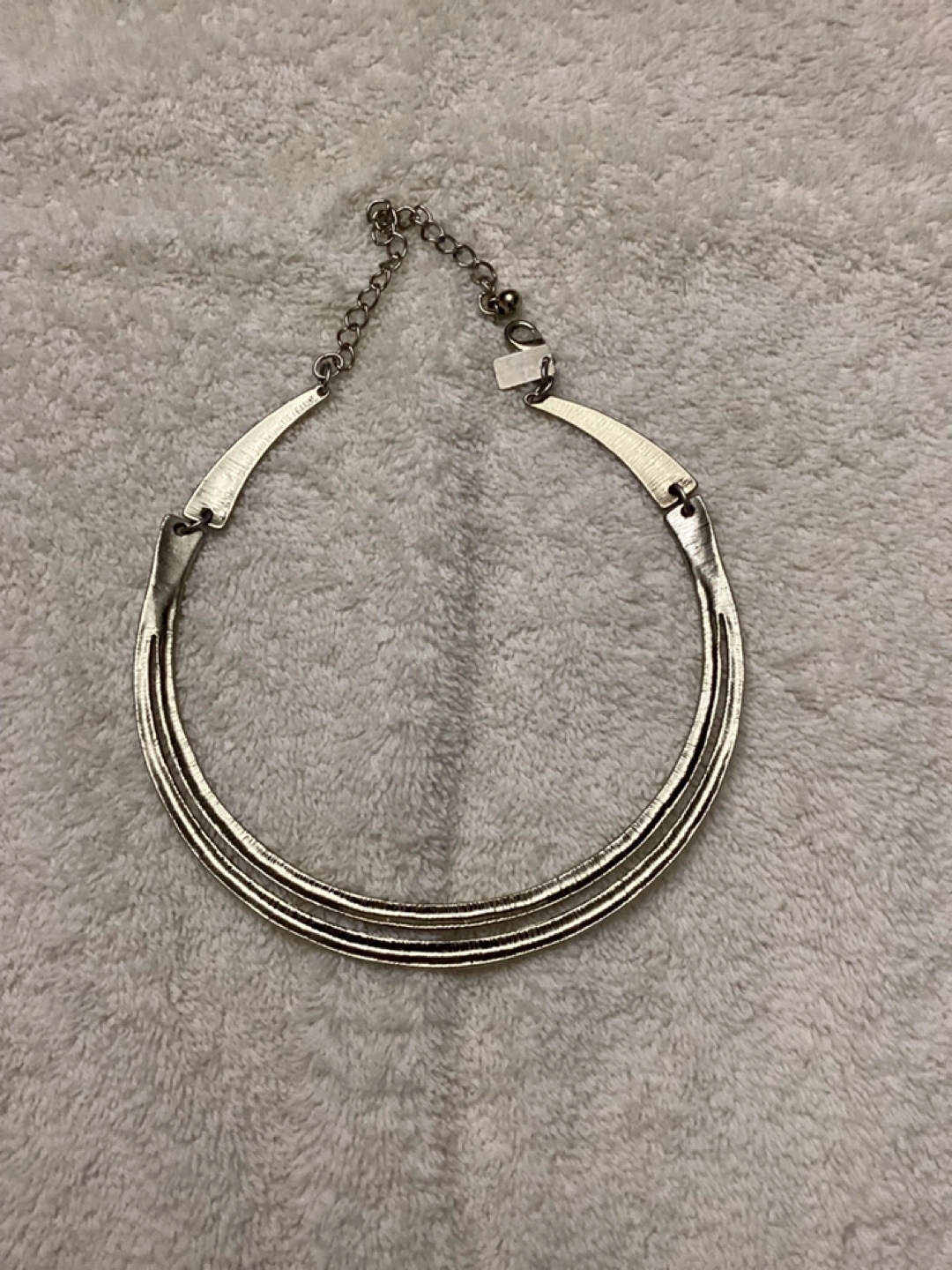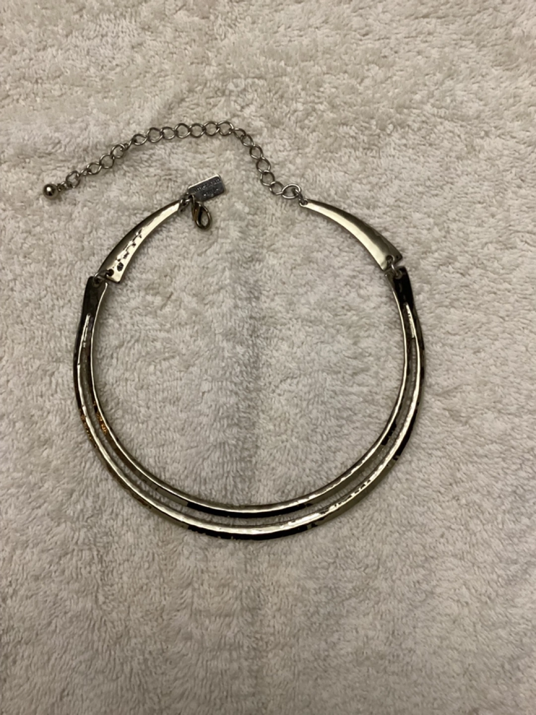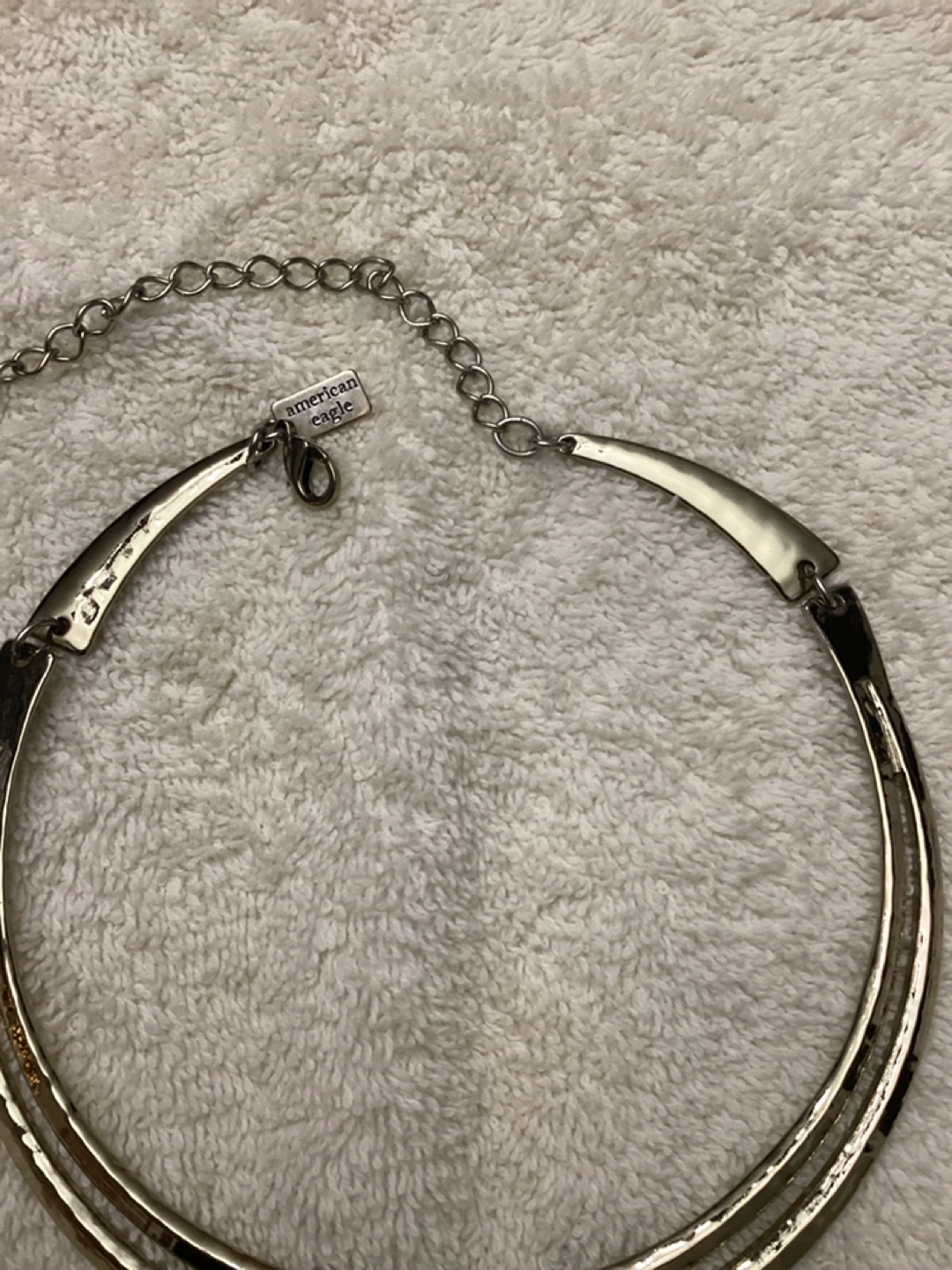 American Eagle Goldtone Choker Necklace, it is hard to see in the pics but there is an open gap with two rows in the necklace, approximate length 19”. $18 or best offer.