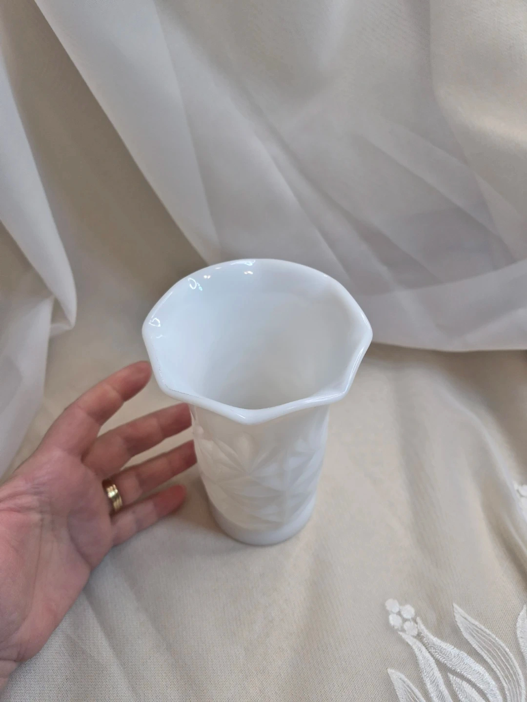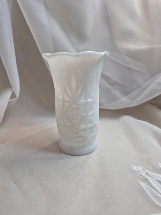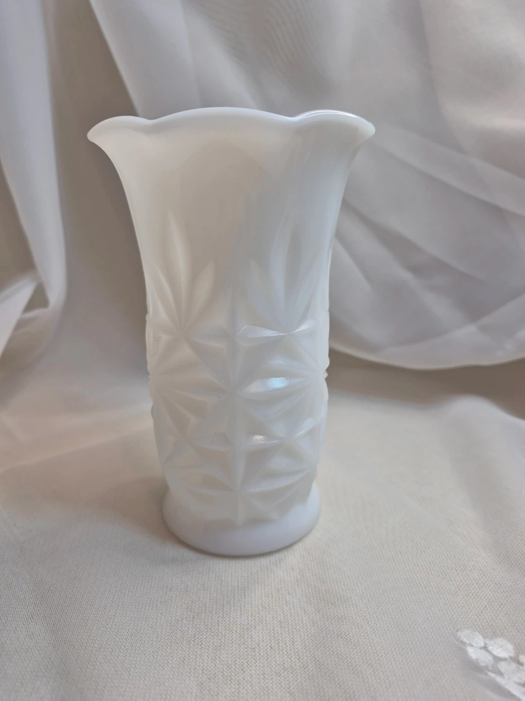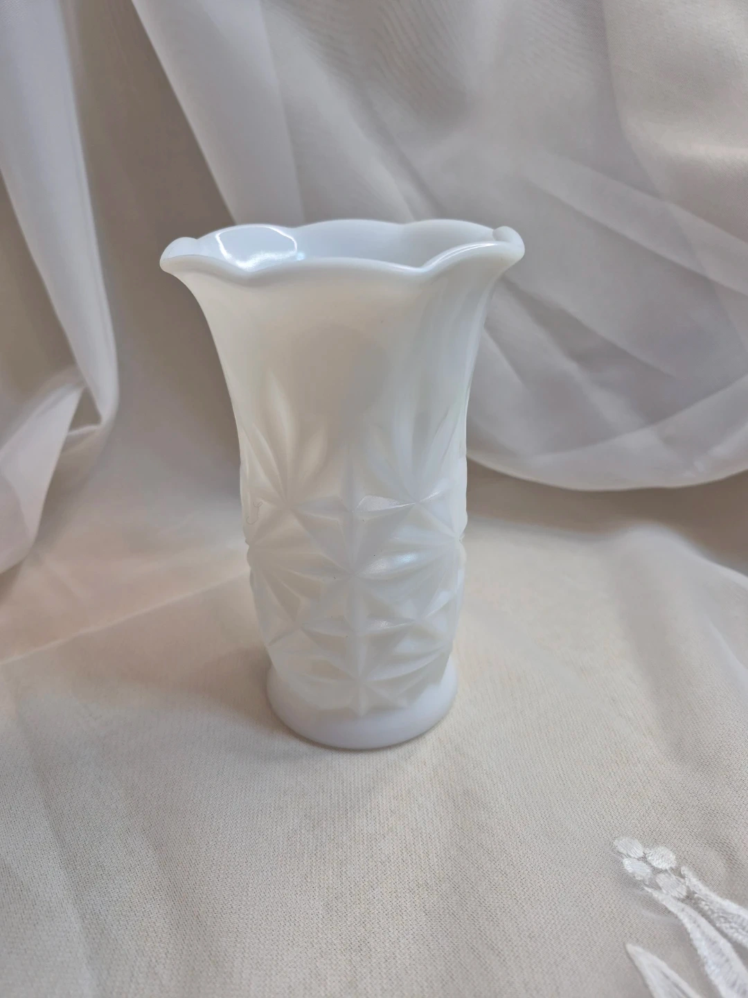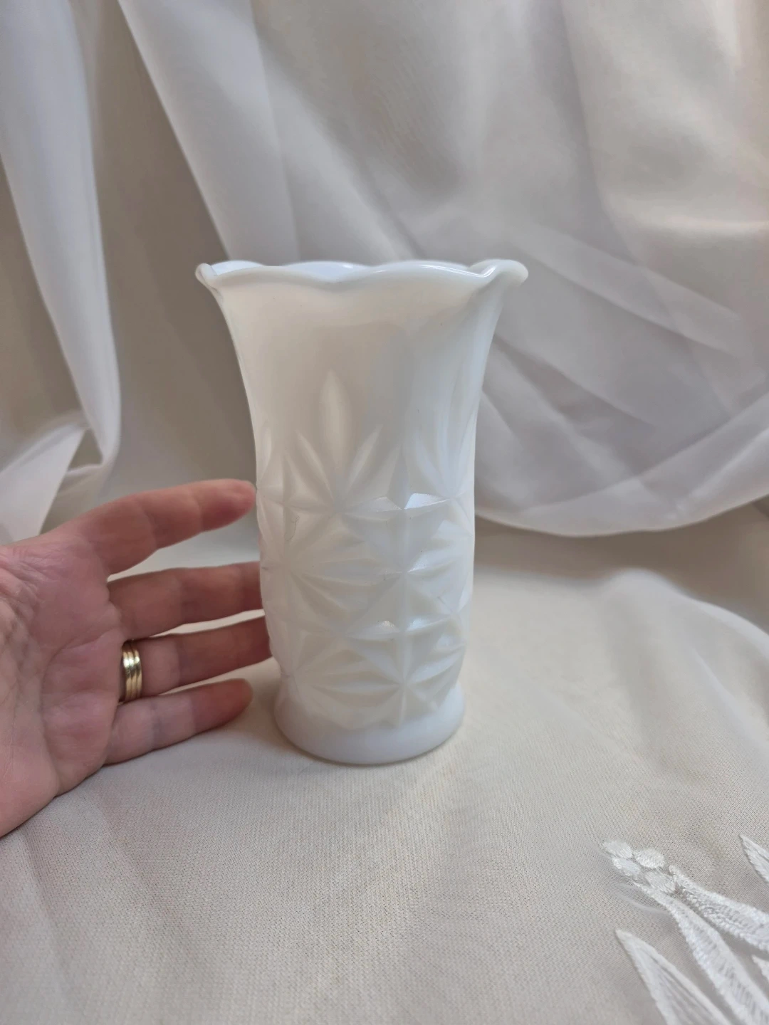 Beautiful Vintage Hazel Atlas White Milk Glass Vase w/ Scalloped Rim & Starburst Pattern 5 3/4 x 3 1/2" Excellent Condition please see all pictures
