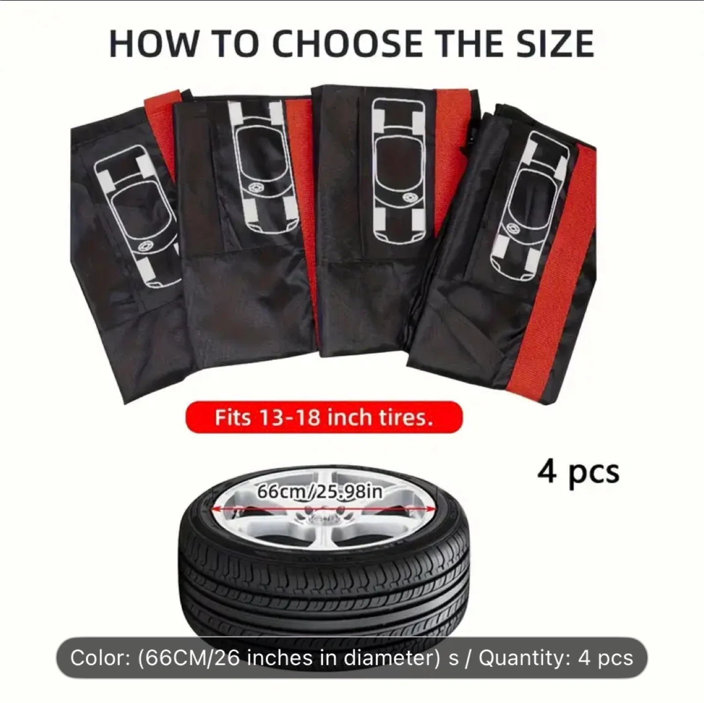 I’m selling 4pcs Heavy-Duty 210D Tire Covers with Handle - Fit for 13.0inch-18.0inch Tires, Scratch-Resistant, Dustproof, Easy-Clean, Winter/Summer Tire Storage Covers.