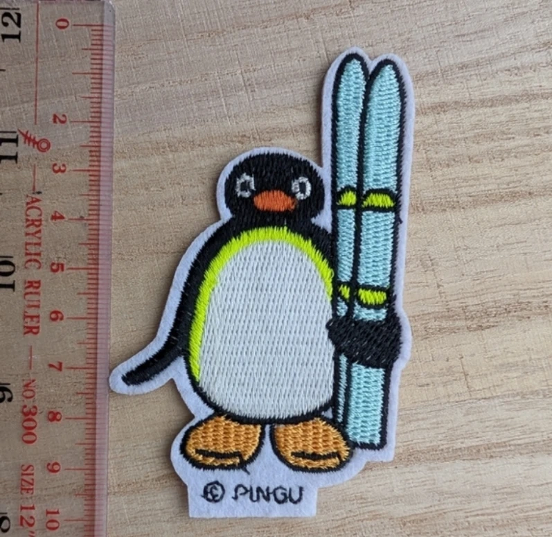 This Pingu patch features the beloved character holding skis. It's made with embroidered details. Great for customizing jackets, backpacks, or other gear!