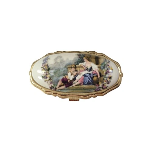 Vintage Victorian Renaissance Style Oval Pill Trinket Ring Box J