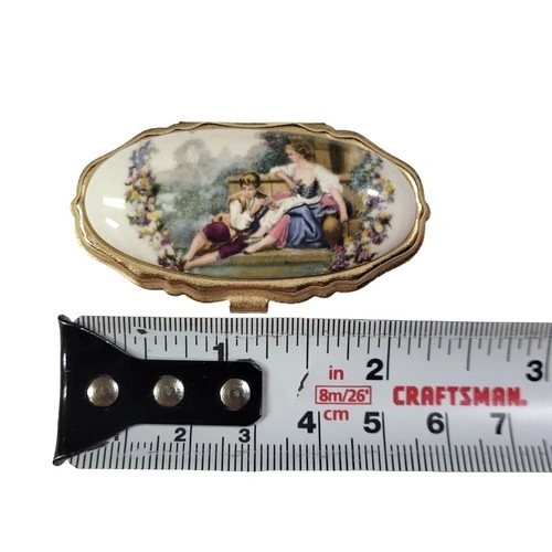 Vintage Victorian Renaissance Style Oval Pill Trinket Ring Box J