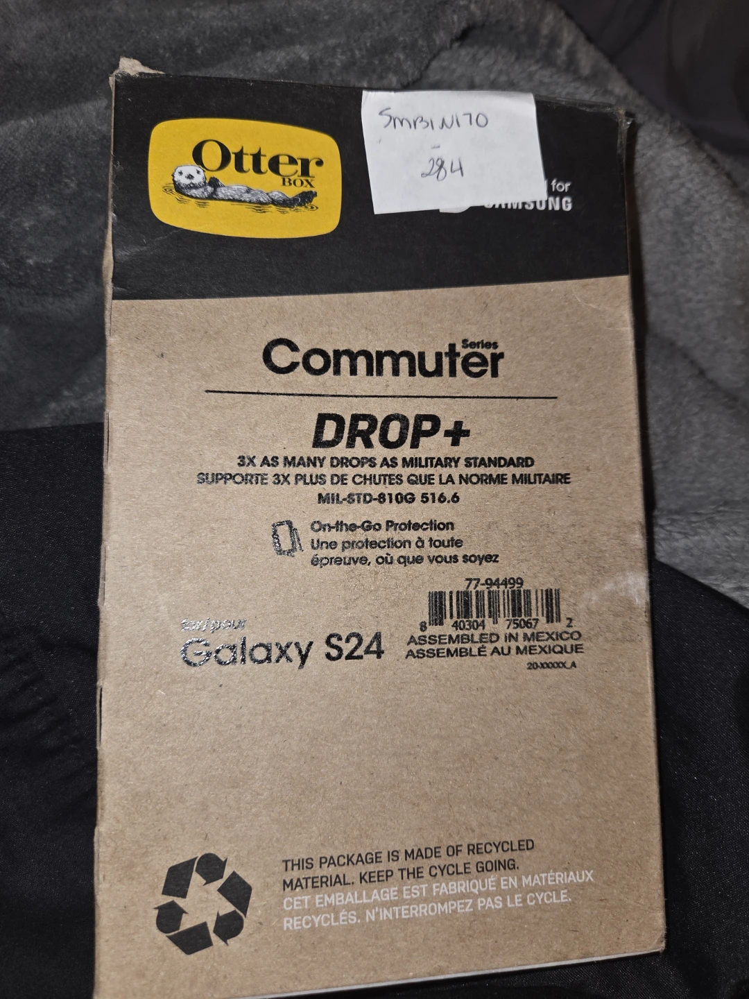 OtterBox Commuter Series case for Samsung Galaxy S24. Offers 3x as many drops as military standard. Includes on-the-go protection. Made of recycled materials.