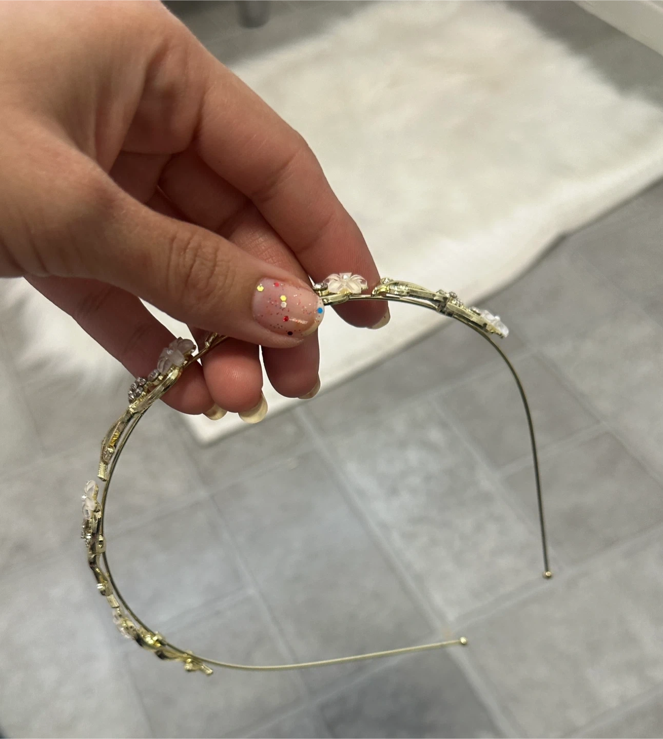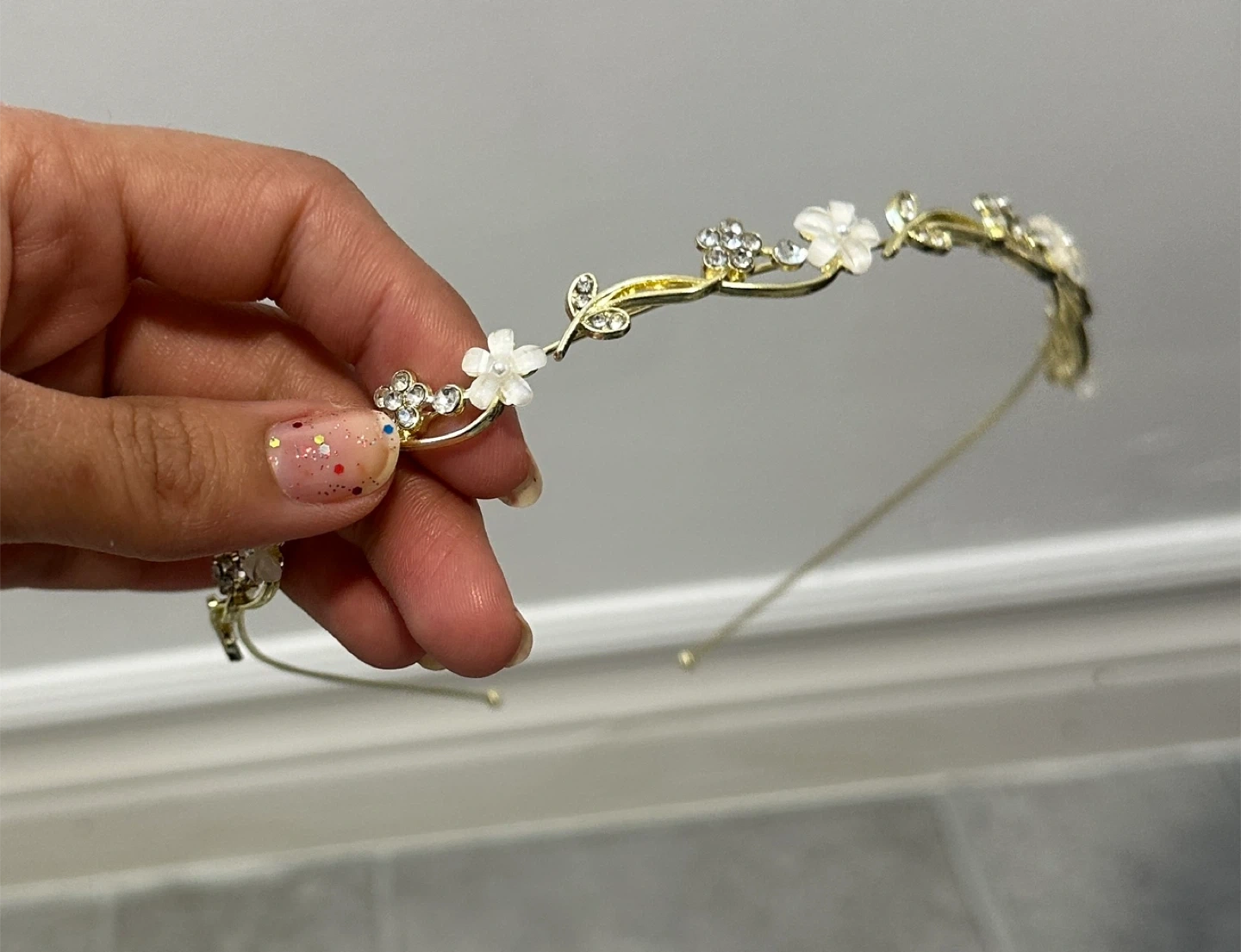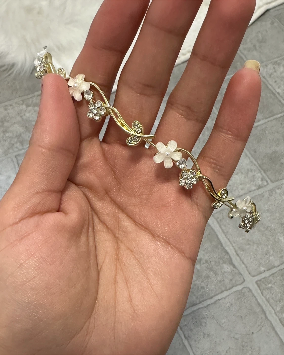 Gold Flower & Rhinestone Tiara Headband