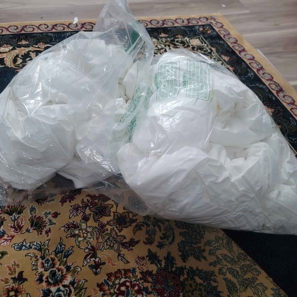 Twin size mattress protector. 100% Polyester. Stretchable knitted polyester fabric fits the mattress easily and gives a comfortable feel. Zippered cover secures the mattress from 360 degrees. 100% waterproof protection with high quality TPU backing resists leakage. Machine washable and tumble dry for easy maintenance. Located in Taralake Crescent NE.