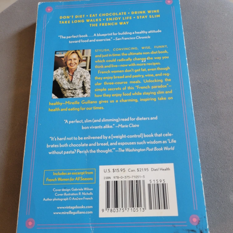 Selling "French Women Don't Get Fat: The Secret of Eating for Pleasure" by Mireille Guiliano! It's a #1 National Bestseller and includes new recipes. The book is a diet/health book.