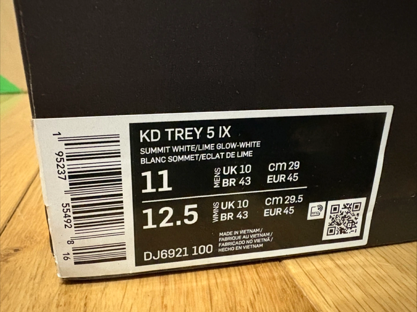 Men's Nike KD Trey 5 IX basketball shoes. Size 11. Summit White/Lime Glow colourway. New in box.