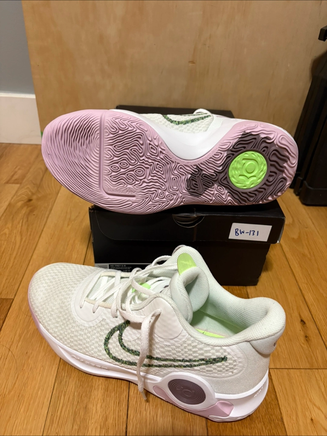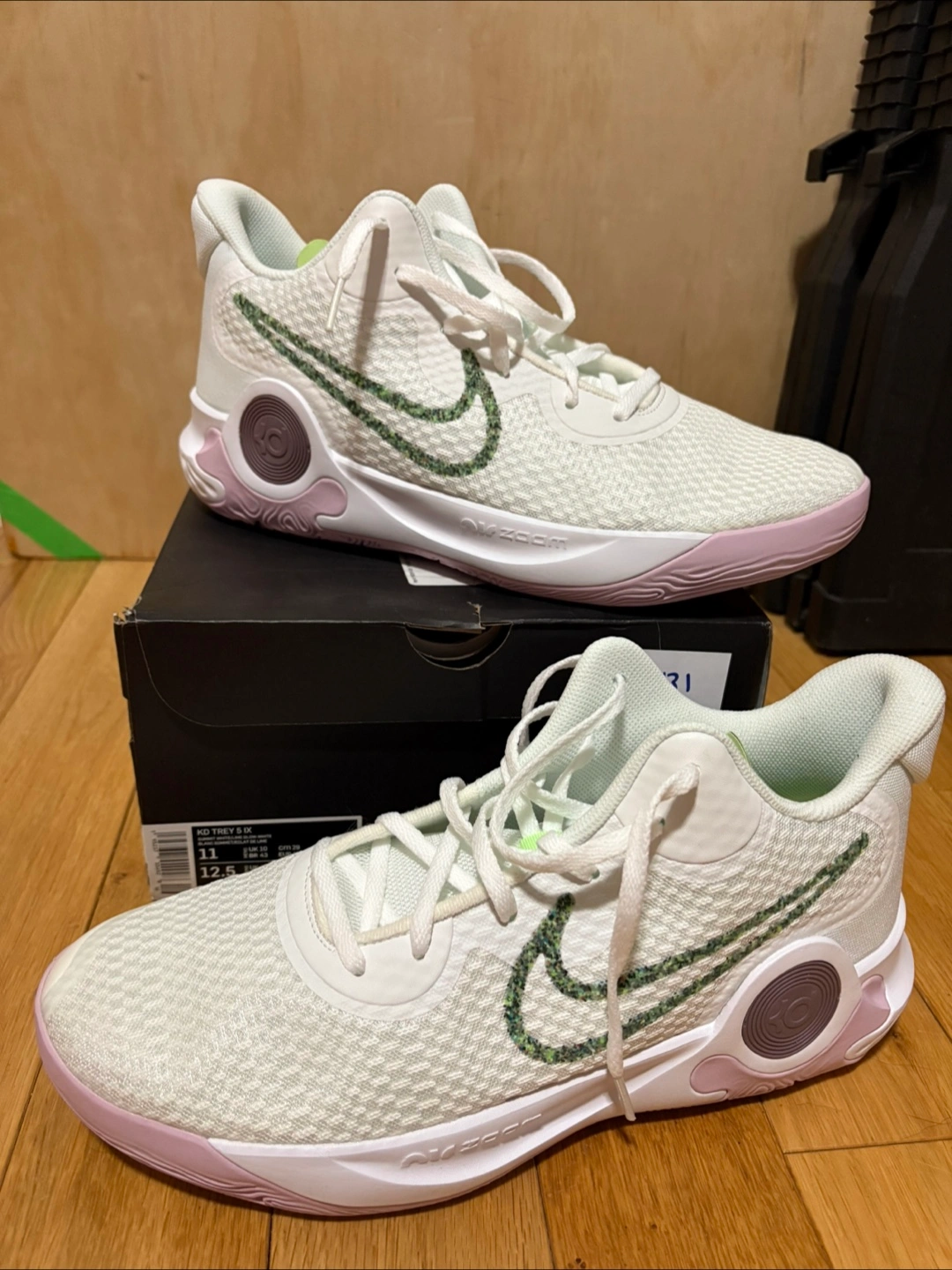 Men's Nike KD Trey 5 IX basketball shoes. Size 11. Summit White/Lime Glow colourway. New in box.